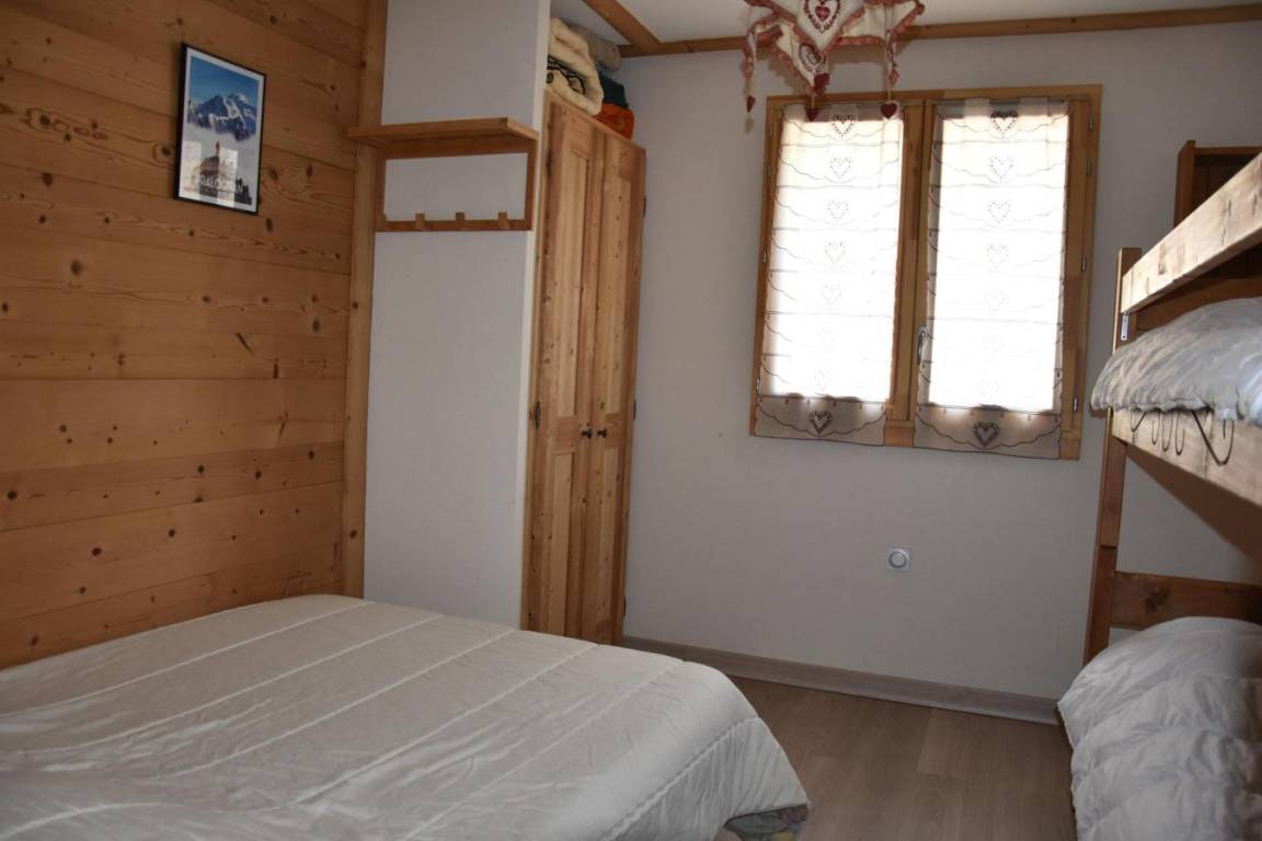 Fläche von ungefähr 64 m². Erdgeschoss. Orientierung : Ost, Süd. Wohnzimmer mit Sofa. Schlafzimmer mit Doppelbett (140), 2 Stockbetten. Schlafzimmer mit Doppelbett (140), Waschraum. Kochnische mit Backofen, Dunstabzugshaube, Geschirrspülmaschine, Mikrowellenherd, 2 Glaskeramikkochfelder, Kühlschrank. Waschräume. separates WC. Kleine Terrasse. Die oberen Betten sind nicht für Kinder unter 6 Jahren geeignet.