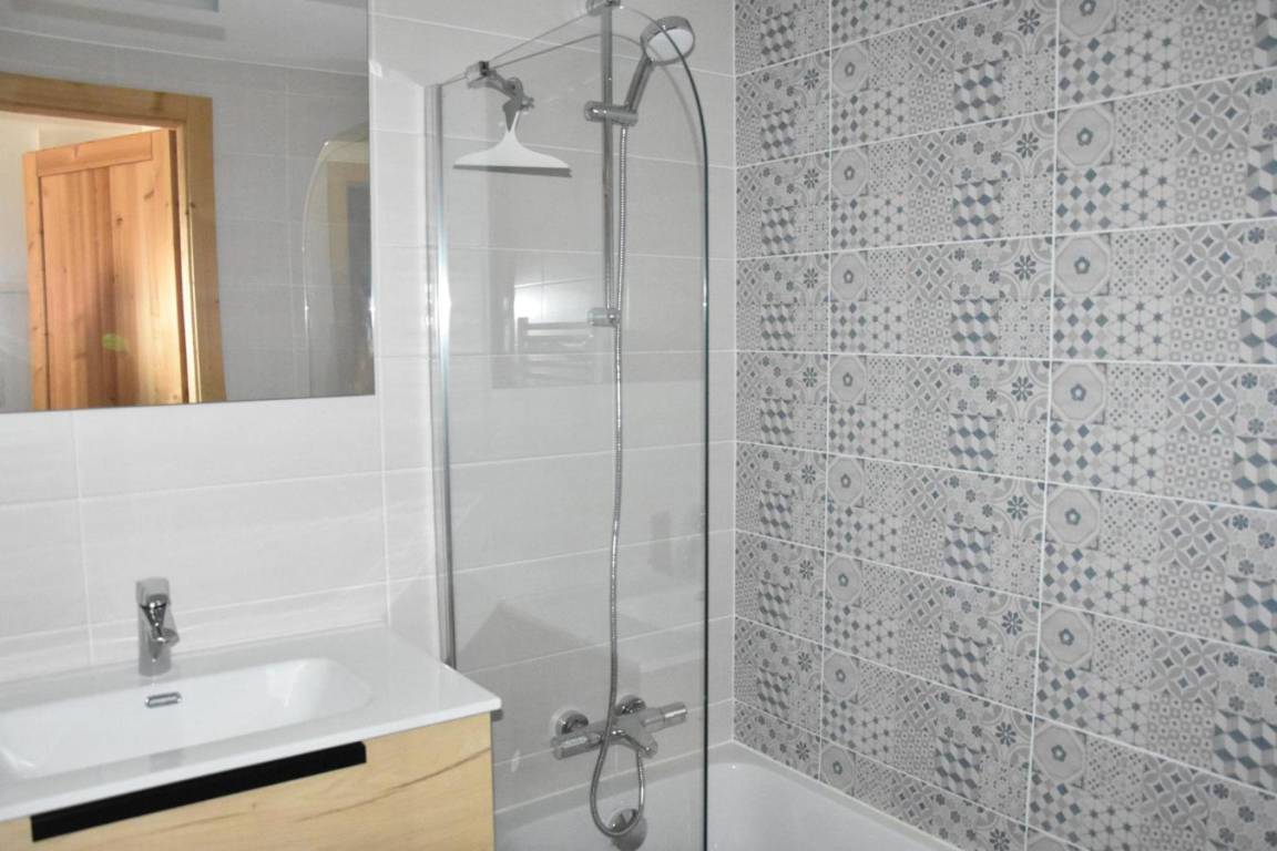 Fläche von ungefähr 82 m². Erdgeschoss. Orientierung : West. Wohnzimmer mit Schwedenofen. Schlafzimmer ab 140.00 m² mit Doppelbett (140), Waschraum, WC. Schlafzimmer mit Doppelbett (140). Schlafzimmer mit 4 Stockbetten. Kochnische mit Backofen, Geschirrspülmaschine, Mikrowellenherd, 2 Glaskeramikkochfelder, Kühl-Gefrier-Kombination. Badezimmer. separates WC. Terrasse ab 48.00 m². Keller mit Waschmaschine. Die oberen Betten sind nicht für Kinder unter 6 Jahren geeignet.