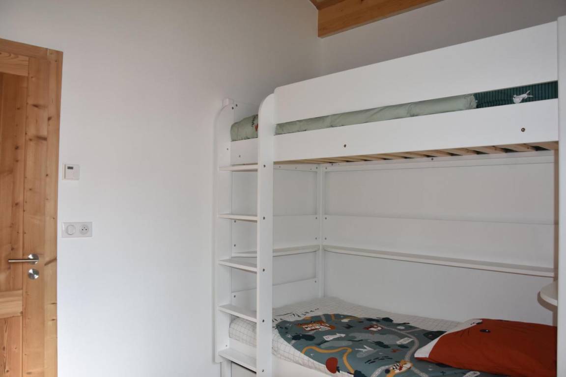 Fläche von ungefähr 60 m². 1te Etage. Wohnzimmer. Schlafzimmer mit Doppelbett. Schlafzimmer mit Ausziehschlafcouch für 2 Personen, 2 Stockbetten. Zwischengeschoss mit Doppelbett (140). Kochnische mit Backofen, Geschirrspülmaschine, Mikrowellenherd, 2 Glaskeramikkochfelder, Kühlschrank. Badezimmer. separates WC. Balkon ab 8.00 m². Keller mit Waschmaschine. Die oberen Betten sind nicht für Kinder unter 6 Jahren geeignet.