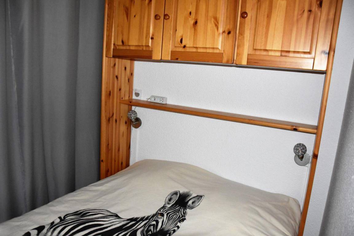 Fläche von ungefähr 29 m². Erdgeschoss. Orientierung : Süd. Wohnzimmer mit Ausziehschlafcouch für 2 Personen. offener Schlafbereich mit Doppelbett, 2 Stockbetten. Küche mit kleiner Backofen mit Mikrowellenfunktion, Geschirrspülmaschine, elektronische Herdplatten, Kühlschrank. Badezimmer mit Badewanne, Waschmaschine. separates WC. Terrasse. Die oberen Betten sind nicht für Kinder unter 6 Jahren geeignet.