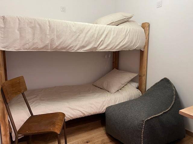 Fläche von ungefähr 59 m² enthält 1 m² unter 1,80 m. 1te Etage. Orientierung : West. Wohnzimmer mit Sofa, . 2 Schlafzimmer mit Doppelbett (140). offener Schlafbereich mit 2 Stockbetten (90). Kochnische mit Backofen, Geschirrspülmaschine, Mikrowellenherd, 2 Induktionsherdplatten, Kühlschrank. Waschräume. separates WC. Balkon. Waschmaschine. Die oberen Betten sind nicht für Kinder unter 6 Jahren geeignet.