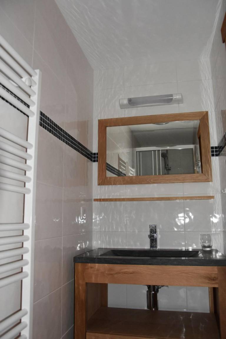 Fläche von ungefähr 74 m². 1te Etage. Orientierung : Nord, Ost, West. Wohnzimmer mit Klappschlafcouch. Schlafzimmer mit Doppelbett (160), Waschraum. 2 Schlafzimmer mit Ausziehschlafcouch für 2 Personen. Kochnische mit Backofen, Geschirrspülmaschine, Mikrowellenherd, 2 Glaskeramikkochfelder, Kühl-Gefrier-Kombination. Badezimmer mit Waschmaschine. separates WC. Terrasse.