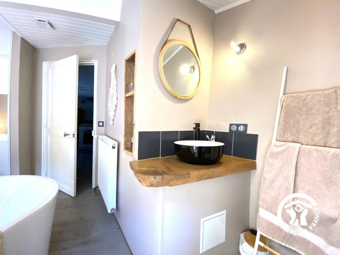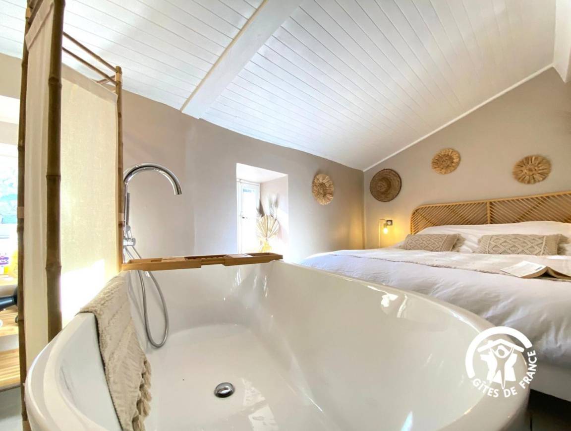 „Gite tout confort très bien équipé malgré un parcours en 2 étages. La douche en bas, il ne faut juste pas oublier son gel douche ou serviette au 2e! Propriétaires très accueillants, soucieux du bien être pensant à plein d'accessoires (produits menagers, linge de maison, cadeaux d'accueil, documentation locale bien sélectionnée).“