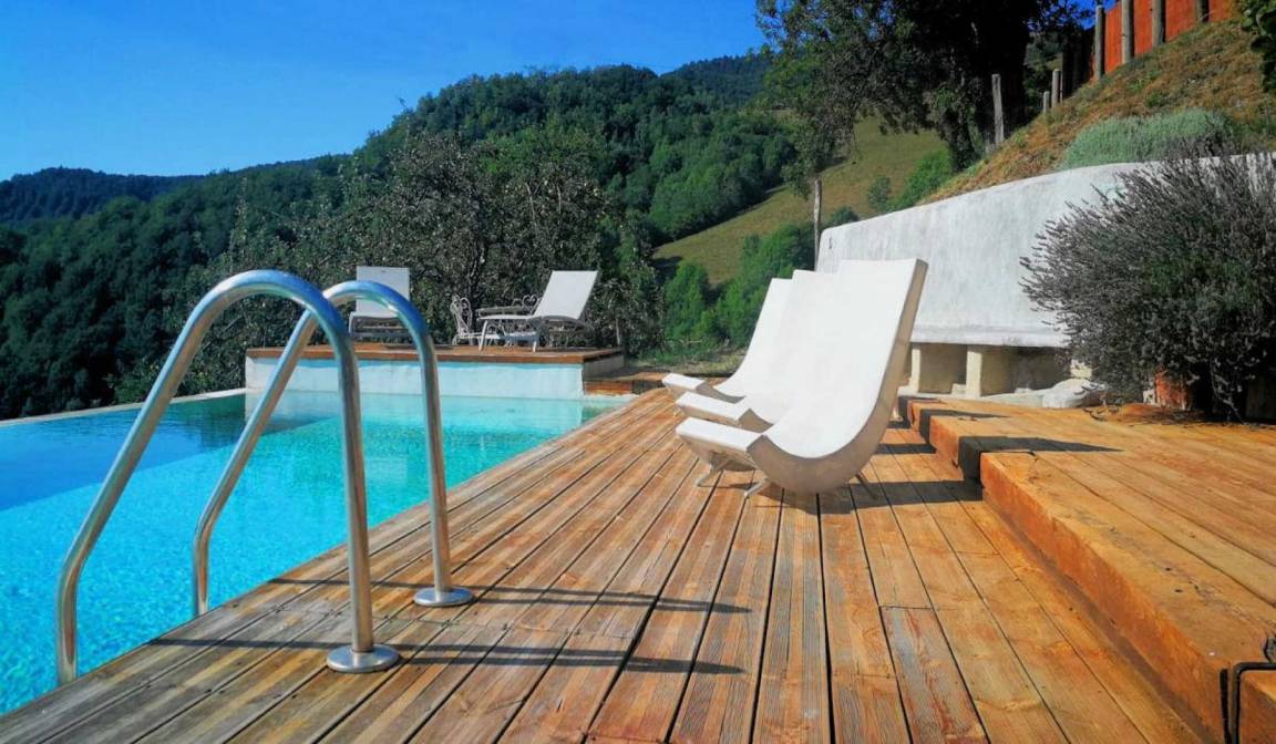 „Super séjour d'une semaine dans un cadre merveilleux. Vue splendide, calme absolu. Idéalement situé pour la randonnée et pour des visites culturelles en France et en Espagne. Très belle piscine. Excellent accueil et les gens du coin sont très accueillants. Hébergement parfait avec de l'espace.“