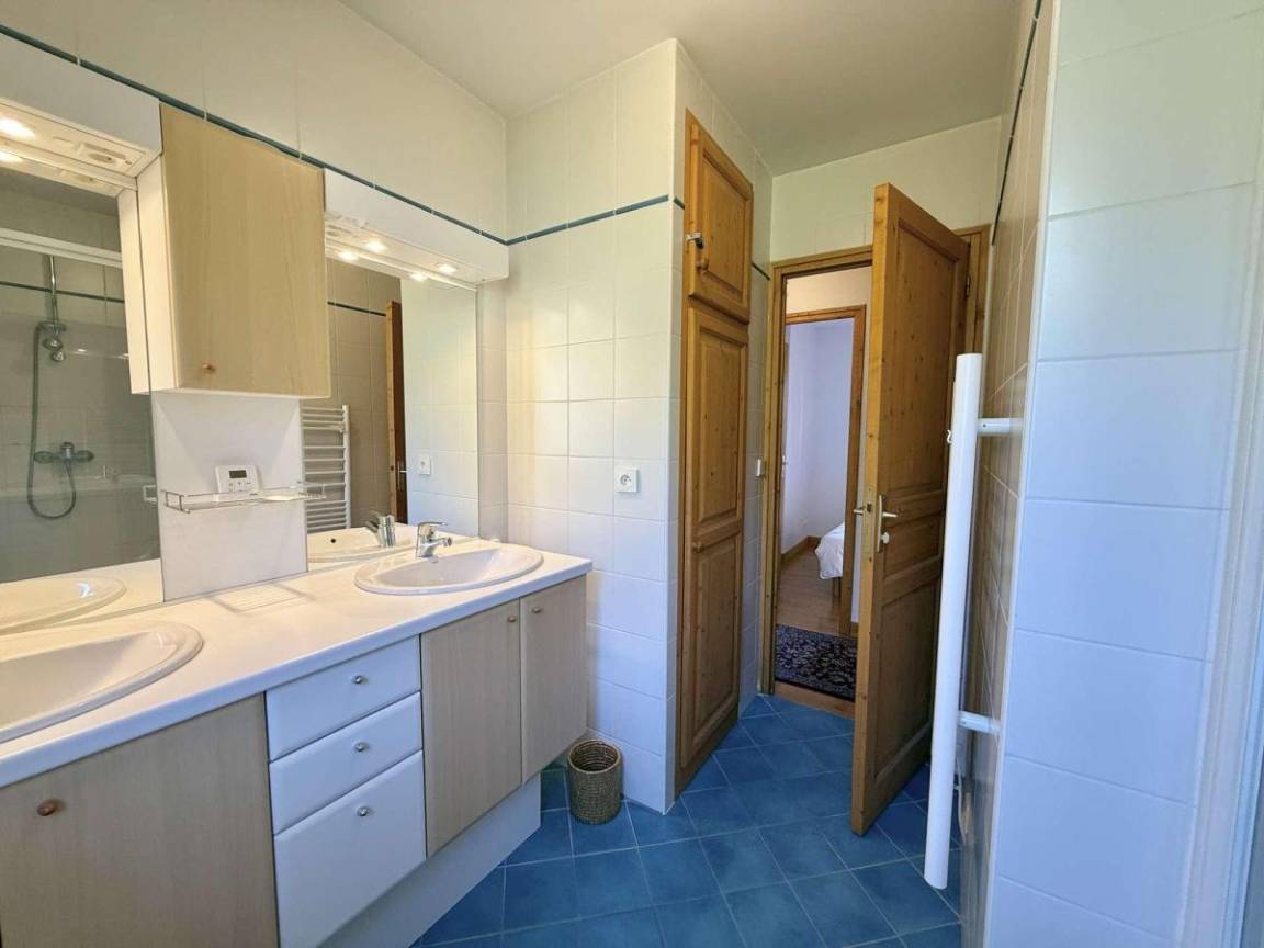 Fläche von ungefähr 50 m². 1te Etage. Orientierung : Süd. Wohnzimmer mit Klappschlafcouch. Schlafzimmer mit Doppelbett (140*190). Schlafzimmer mit 2 Stockbetten (80*190). Kochnische mit Raclettegerät, Wasserkocher, Kaffeemaschine (à filtre), Backofen, kleiner Backofen mit Mikrowellenfunktion, Toaster, Geschirrspülmaschine, Herdplatten, Kühl-Gefrier-Kombination. Waschräume. separates WC. Balkon. Die oberen Betten sind nicht für Kinder unter 6 Jahren geeignet.