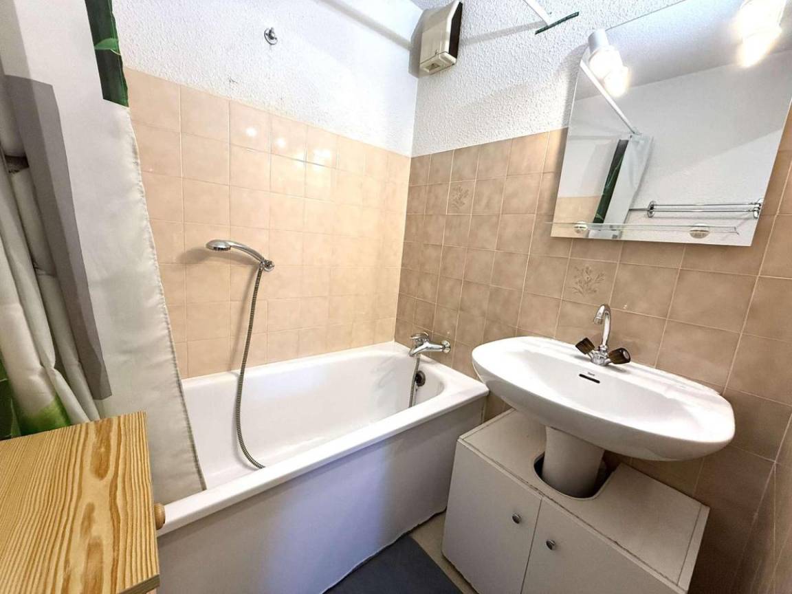 Fläche von ungefähr 28 m². 1te Etage. Orientierung : Nord-West. Wohnzimmer mit Klappschlafcouch (140). Schlafzimmer mit Doppelbett (140). Schlafbereich mit 2 Stockbetten (80). Kochnische mit Kaffeemaschine (senseo), kleiner Backofen mit Mikrowellenfunktion, Toaster, elektronische Herdplatten, Kühlschrank. Badezimmer mit Badewanne. separates WC. Balkon. Die oberen Betten sind nicht für Kinder unter 6 Jahren geeignet.