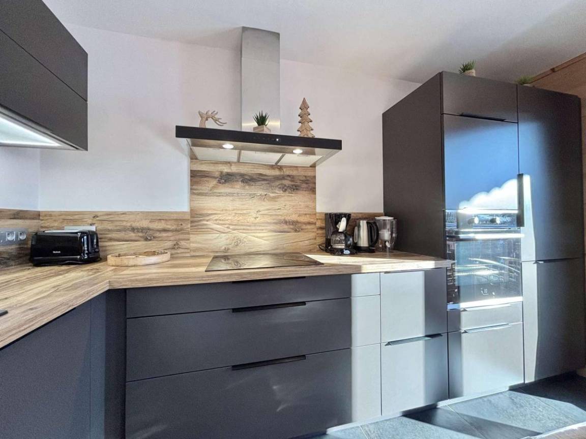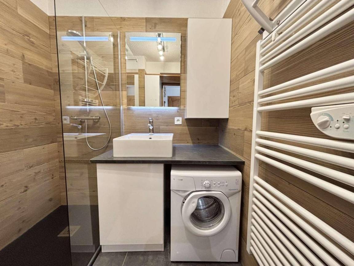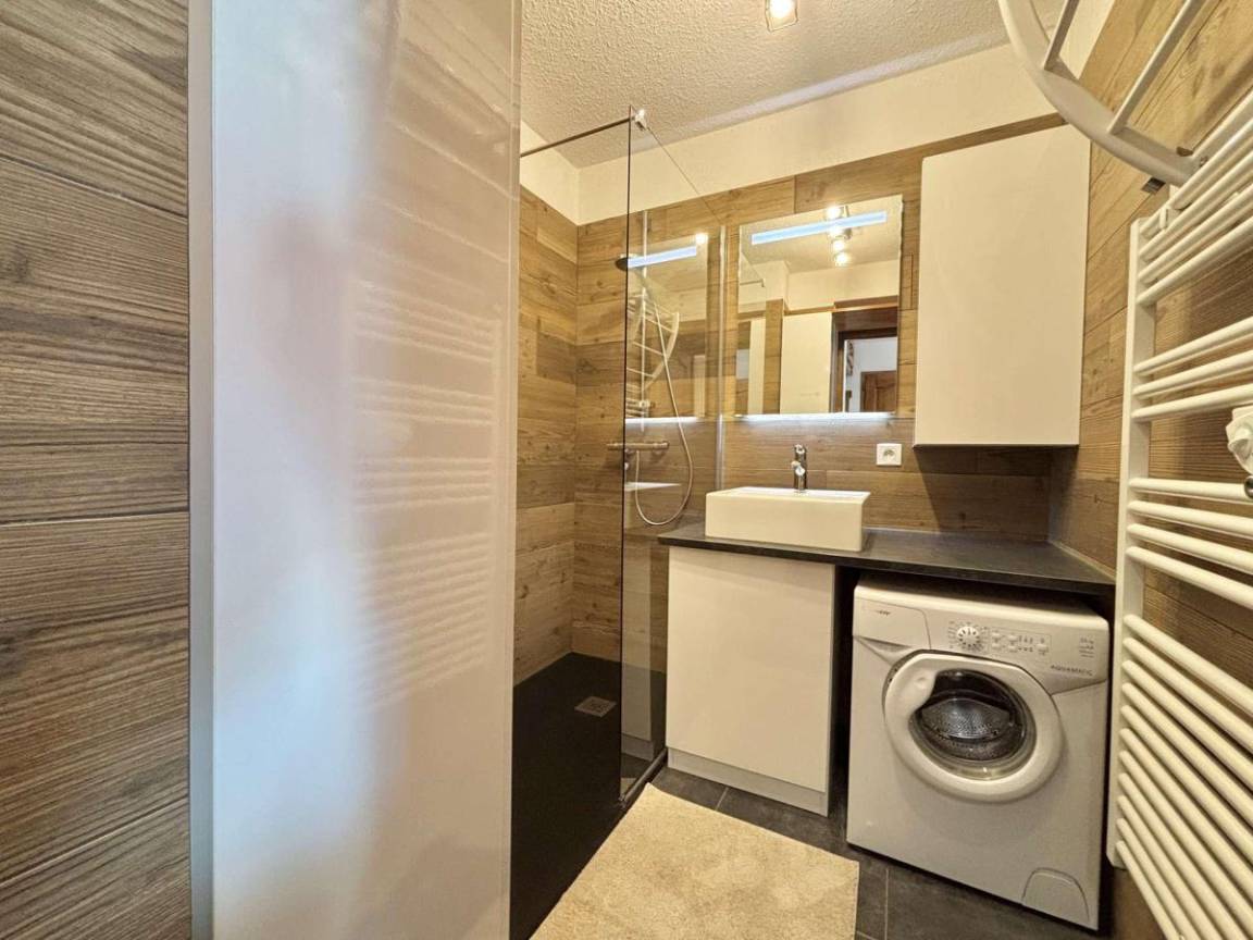 Die Residenz La Gélinotte genießt eine ruhige Lage, nur 300 Meter vom Zentrum von Praz-sur-Arly entfernt, und ist somit ein idealer Ausgangspunkt für Sommeraktivitäten. Nur 450 Meter entfernt lädt der neue Badesee nach einem Wandertag zum Entspannen ein. Dank der Nähe zu Wanderwegen, Shuttles und Geschäften ist die Residenz ein idealer Ausgangspunkt für die Erkundung der Mont-Blanc-Region im Sommer. Fläche von ungefähr 34 m². Erdgeschoss. Orientierung : Süd. Blick berg. Wohnzimmer mit Klappschlafcouch (140). offener Schlafbereich mit Doppelbett. Kochnische mit Fonduegerät, Raclettegerät, Wasserkocher, Kaffeemaschine, Backofen, Toaster, Geschirrspülmaschine, Mikrowellenherd, 2 Induktionsherdplatten, Kühl-Gefrier-Kombination. Waschräume. WC. Terrasse. Waschmaschine.