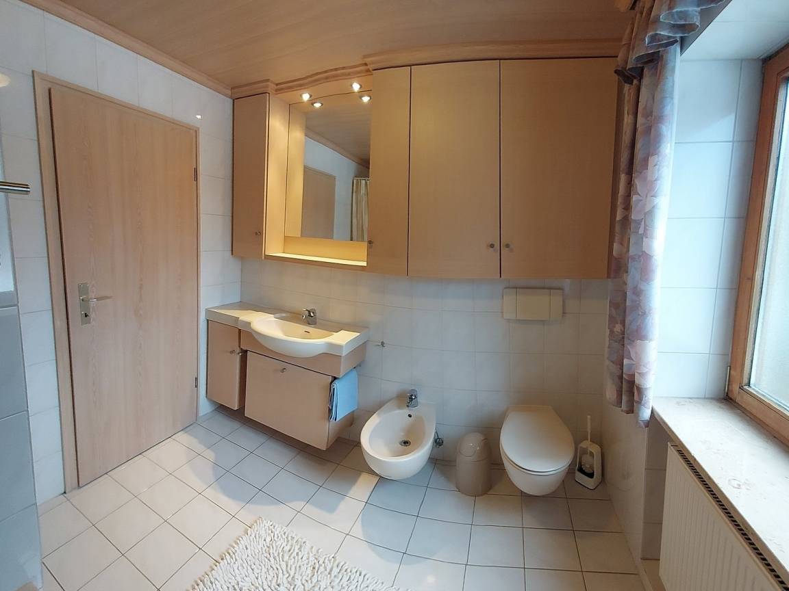 Das schöne, großzügig eingerichtete Badezimmer verfügt über Badewanne, Dusche, Bidet, Waschtisch und WC.