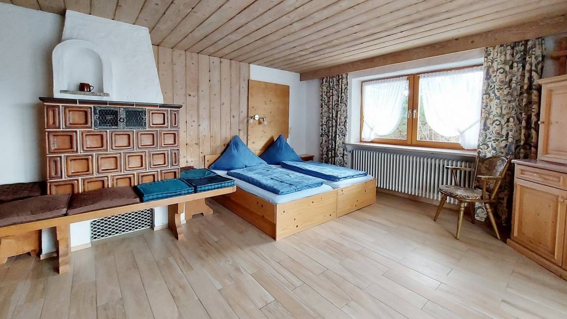Ein gemütliches und geräumiges Wohn-/Esszimmer mit Eckbank und Polstersitzgruppe, TV, Radio und Kachelofen lädt zum gemeinsamen Essen und Beisammensitzen ein, WLAN ist vorhanden.