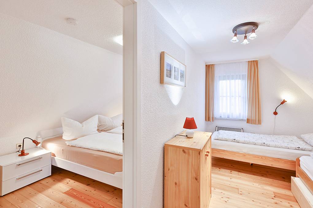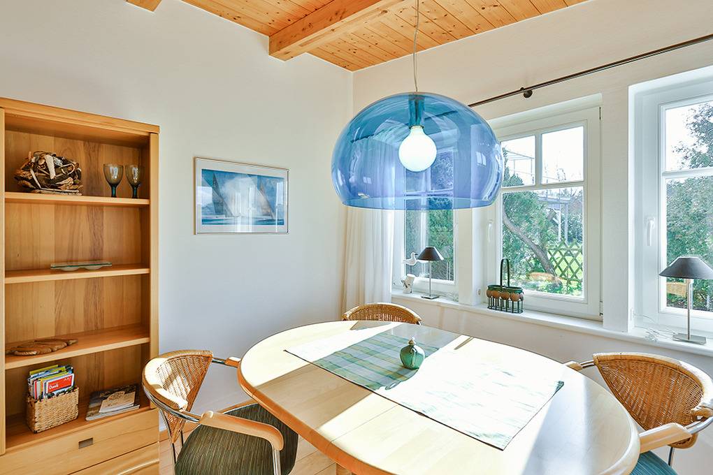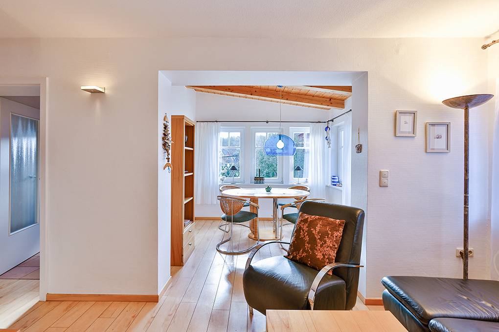 D 66.8 Ferienhaus 1-4 Pers.: 4-Zimmerhaushälfte mit 70 qm Wohnfläche über 2 Etagen. Parterre: Freundlich eingerichteter Wohn-/Essraum mit Couchgarnitur, Sat-TV, gemütlicher Essbereich in der Darßer Veranda mit Esstisch. Separate Küche mit gut ausgestatteter Küchenzeile (Backofen, 4-Plattenherd). Bad: Du, Wb, WC, Waschmaschine. 1. Etage mit leichten Schrägen: Doppelzimmer. 2-Bettzimmer (Durchgangszimmer).