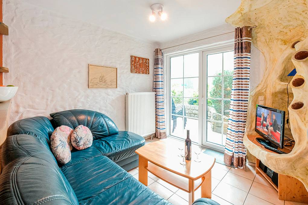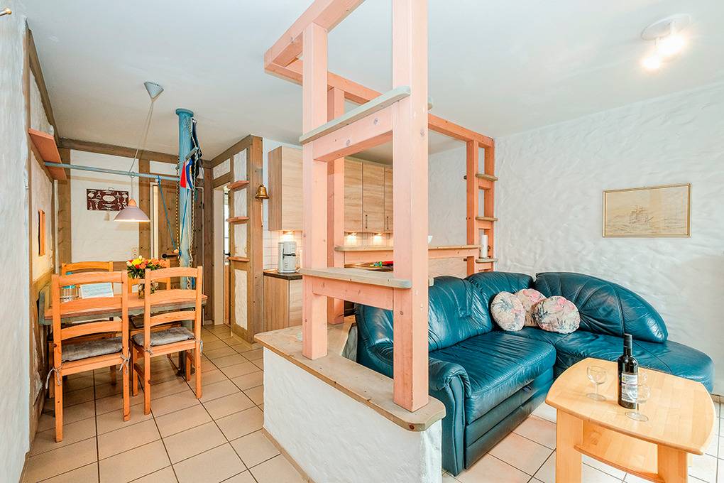 D 66.18 Wohnung 1-4 Pers.: 3-Zimmerwohnung, 50 qm Wohnfläche, Parterre. Gemütlicher Wohn-/Essraum mit Sitzgarnitur, Esstisch, Küchenzeile (Backofen). Doppelzimmer. 2-Bettzimmer mit Etagenbett. Bad/WC. Terrasse.