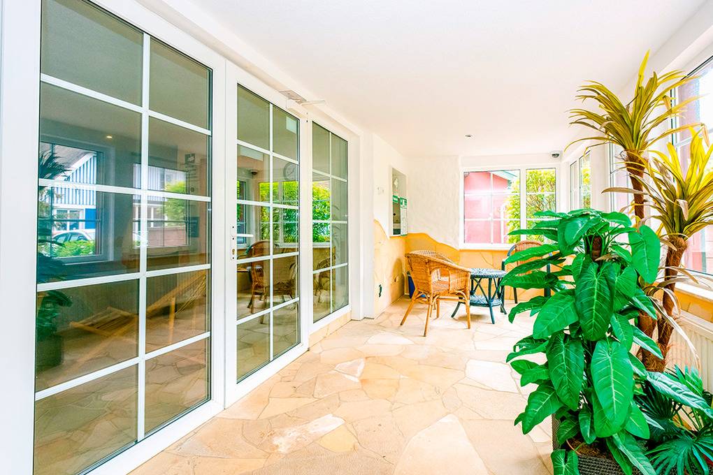 Haus: Schöne Ferienwohnungsanlage mit Schwimmbad und Sauna. Zehn hochwertige Nichtraucher Wohneinheiten in 2 hintereinander liegenden Gebäuden. In der Anlage befinden sich Kinderspielplatz, überdachte Grillterrasse mit Außengrill, Fahrradabstellplatz. Gegen Gebühr: Wellnessbereich mit beheiztem Schwimmbad, Sauna, Kneippbecken, Regendusche, Liegestühlen, Wintergarten mit Sitzmöglichkeiten; Waschraum mit Münzwaschmaschine/-Trockner.