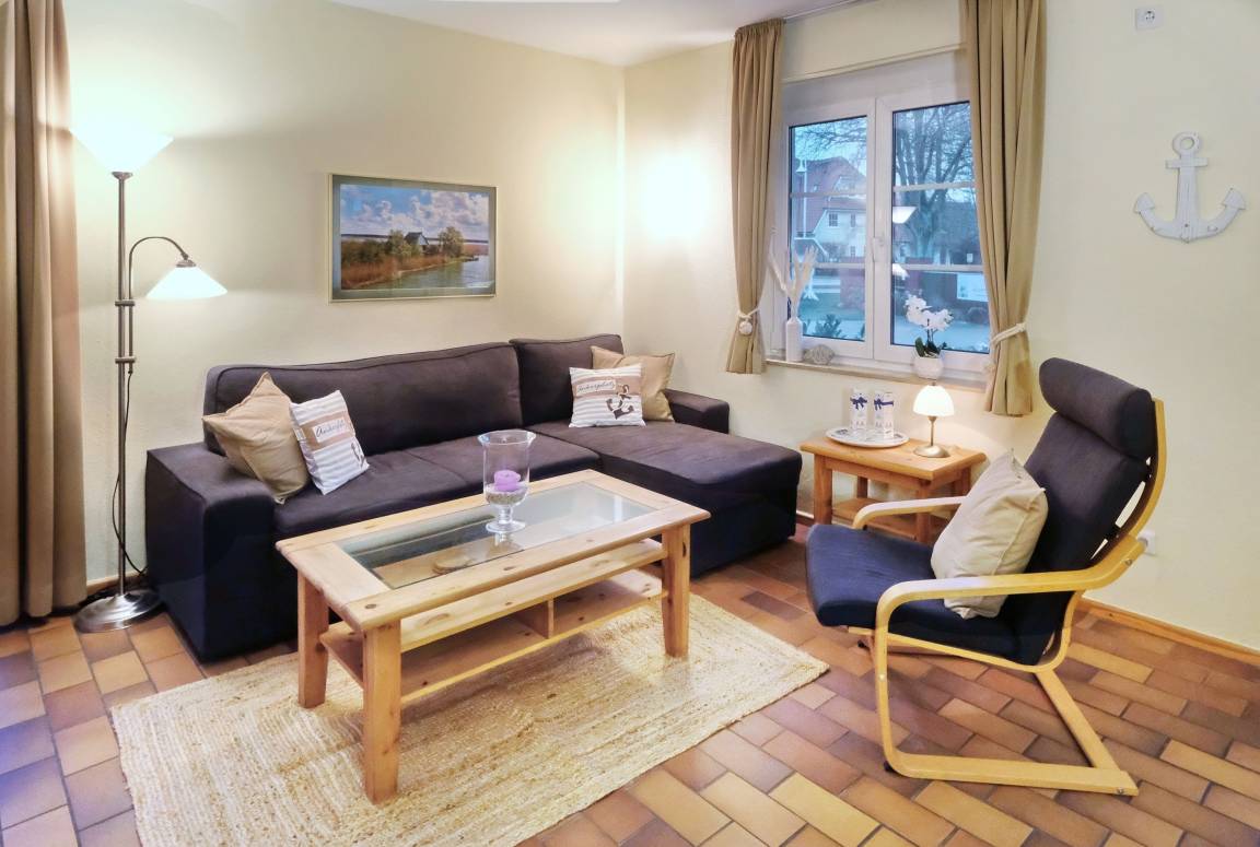 In der Wohnanlage Residenz Kormoran im Ostseebad Prerow liegt die komfortable Ferienwohnung mit Wohnraum, Küche, Schlafzimmer, Dusche/WC und Gäste-WC.