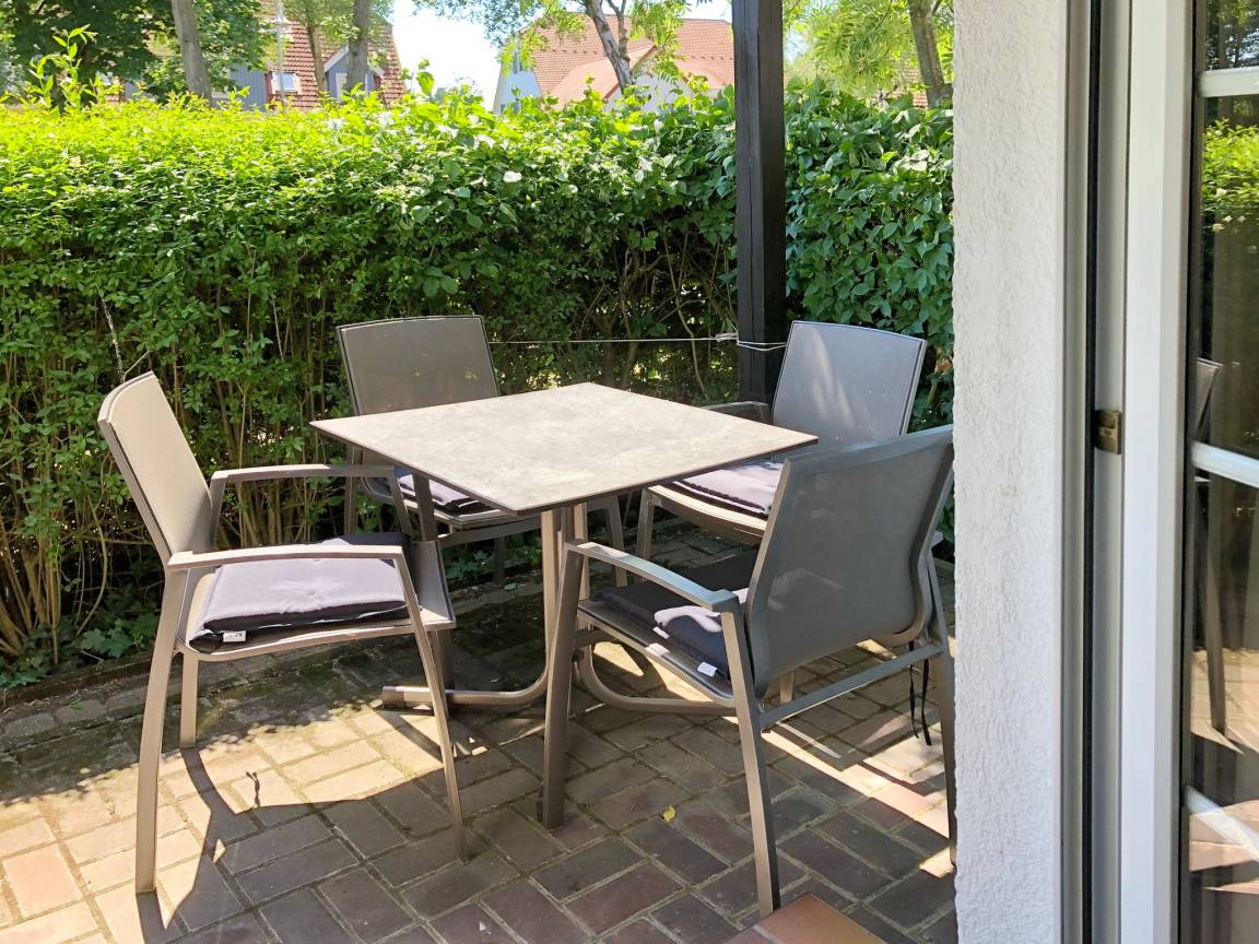 Die Ferienwohnung verfügt außerdem über eine eigene Terrasse mit Gartenmöbeln und einen eigenen Schuppen für Fahrräder, die Sie im Ort ausleihen können. Die Terrasse in Südausrichtung ist vom Wohnraum aus erreichbar.