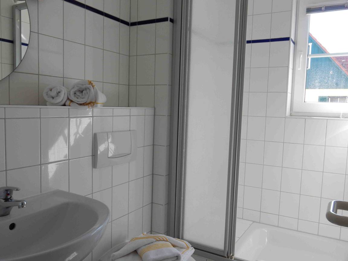 2 Zimmer ca. 50 qm für1-4 Personen, 1. OG im Gästehaus Kormoran, Waldstraße 64 b, Ostseebad Prerow. Wohnzimmer mit Schafcouch, Sitzgarnitur, SAT-TV/Radio, WLAN, Esstisch, moderner Küchenzeile mit Backofen, Ceranfeld, Spülmaschine; Schlafzimmer mit Doppelbett, Dusche/WC, Gäste-WC, Süd-West-Balkon.