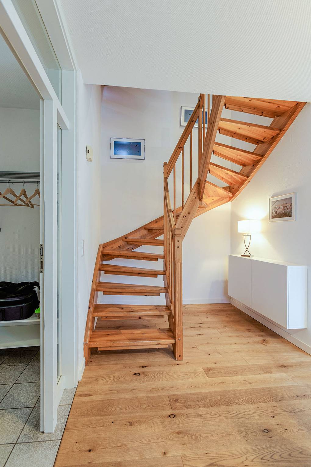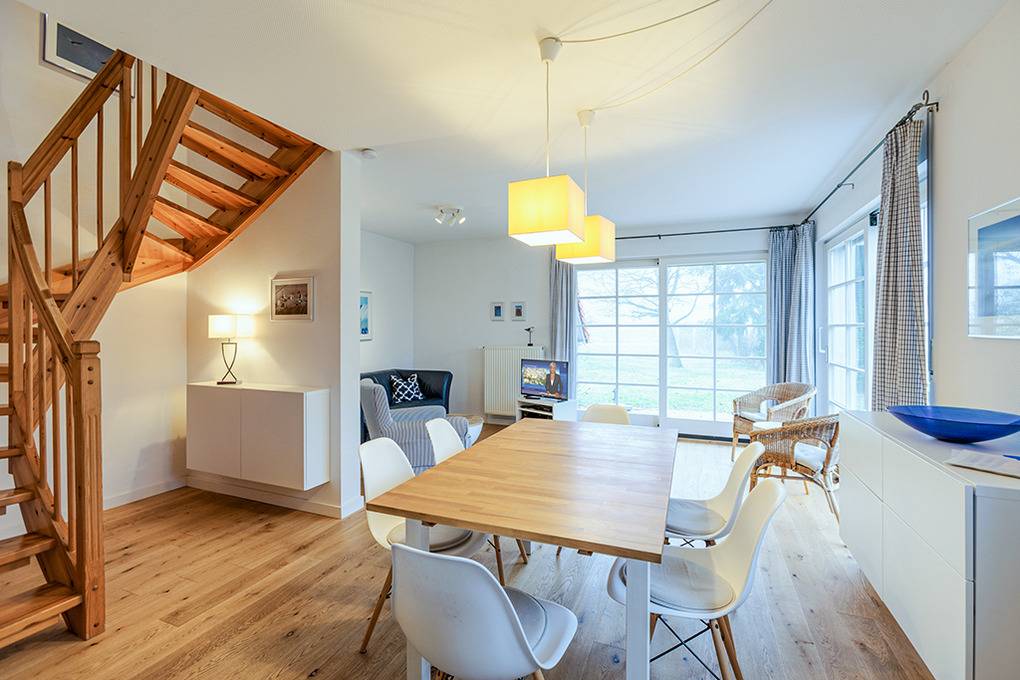 D 66.56 Ferienhaus 1-6 Pers.: 4-Zimmer-Haushälfte mit 100 qm Wohnfläche über 3 Etagen. Parterre: Freundlich eingerichteter Wohn-/Essraum mit Couchgarnitur, Sat-TV, DVD Player, Stereoanlage, Esstisch, moderner Einbauküche (Backofen, Spülmaschine, Nespresso-Maschine). Bad: Du, Wb, WC. 1. Etage: Schönes Doppelzimmer mit kleiner Arbeitsecke. Weiteres Doppelzimmer. Bad: Du, Wb, WC, Waschmaschine. 2. Etage: Gemütliches Doppelzimmer im Dachgeschoss.
