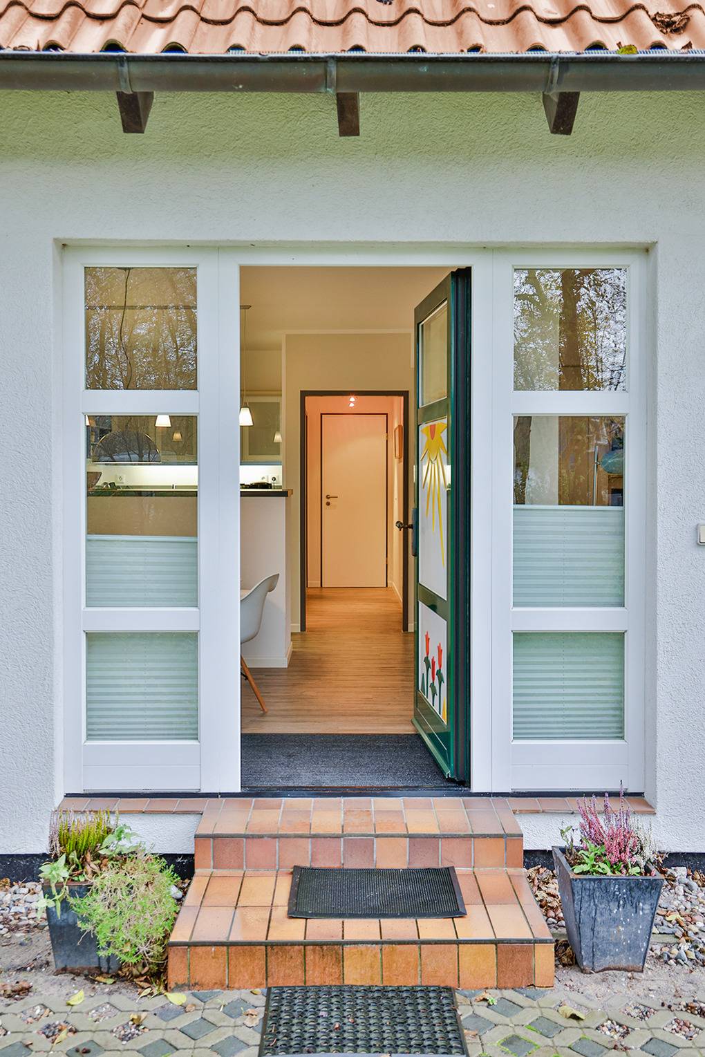 Haus: Schönes Apartmenthaus mit geschmackvoll eingerichteten Ferienwohnungen, ruhig in einer Seitenstraße gelegen. Jede Fewo mit Terrasse mit Sitzmöbeln. Kostenloser Internetanschluss über W-Lan. Nichtraucherwohnungen. Zentralheizung. Gemeinschaftlicher Garten mit Rasenfläche. Fahrradschuppen. 1 Pkw-Stellplatz/Fewo.