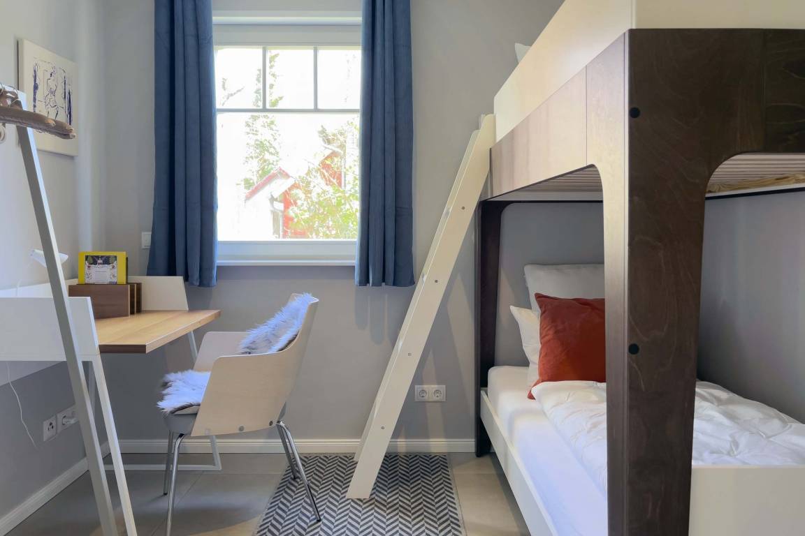 Schlafzimmer: Ein Hauptschlafzimmer mit gemütlichem Doppelbett und ein zweites Schlafzimmer mit Etagenbett