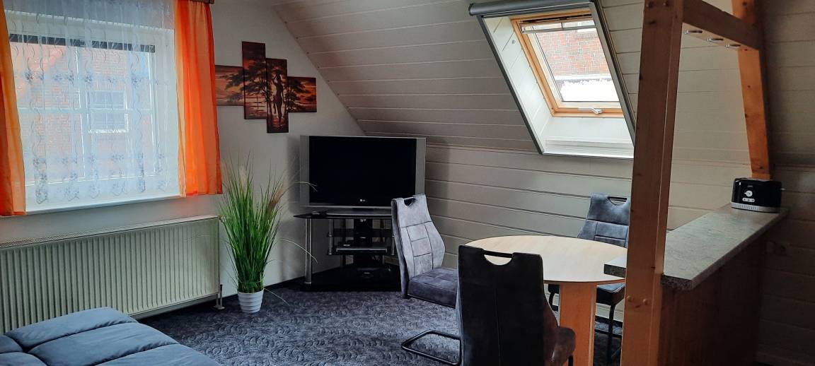 Ihr Urlaubsdomoizil befindet sich in einem Einfamilienhaus im Obergeschoß und ist eine in sich abgeschlossene Ferienwohnung mitten in der Ortslage an einer ruhigen Seitenstraße.