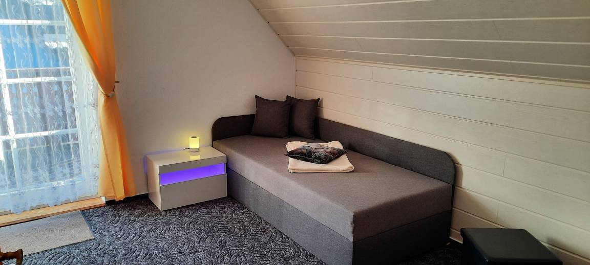 Die 50m² der Ferienwohnung teilen sich auf 1 Schlafzimmer,1 Wohnbereich und 1 Badezimmer. Eine kleine Küche ist in Wohnung integriert.
