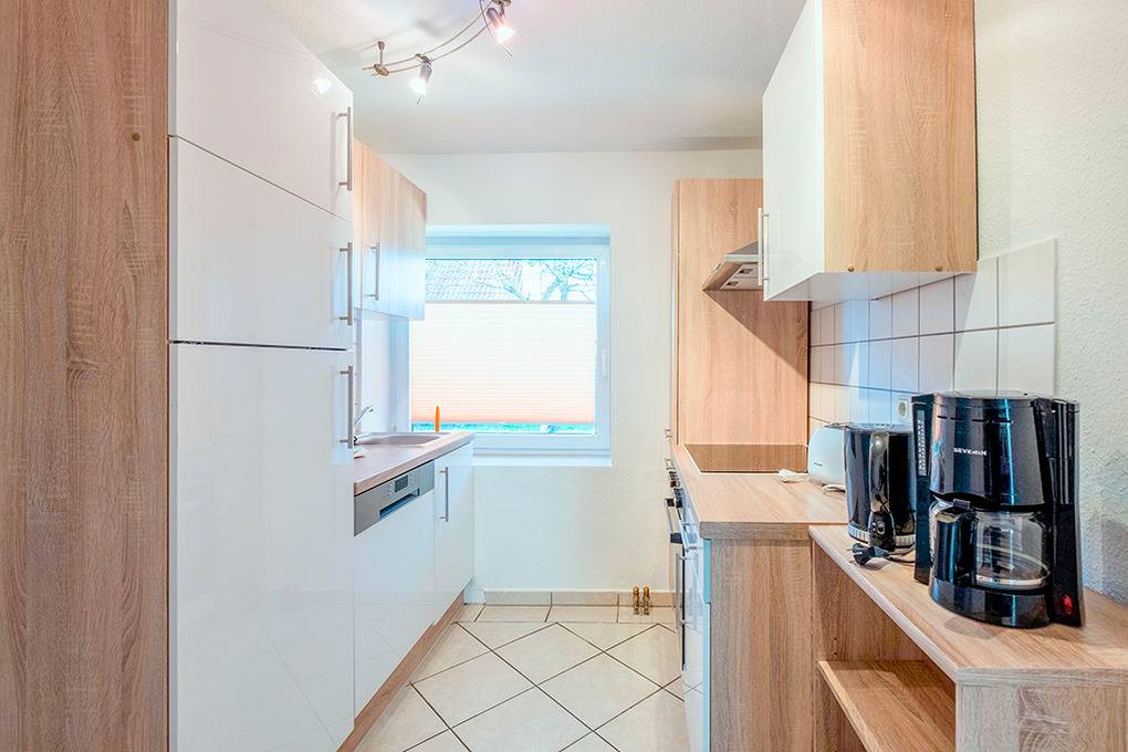D 66.32 Wohnung 2-4 Pers.: 2-Zimmerwohnung, 45 qm Wohnfläche, Parterre. Wohn-/Essraum mit Sitzgarnitur (Ausziehcouch 2 Pers.), Esstisch, Küchenzeile (Backofen, Spülmaschine). Doppelzimmer. Bad/WC.