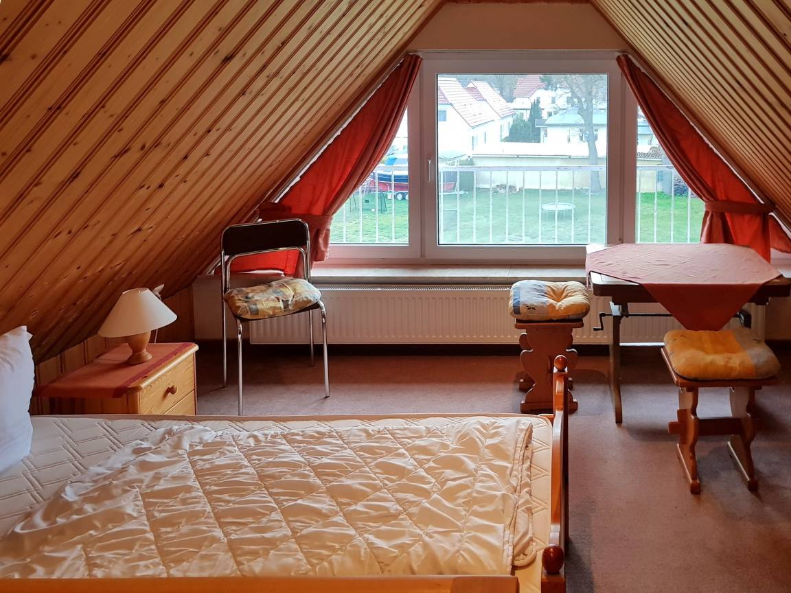 Die gut ausgestattete Ferienwohnung im 1. OG bietet Platz für bis zu 5 Personen. Ein Schlafraum, der Wohnraum mit Küche und das Bad sind im 1.OG. Der 2. Schlafraum ist im DG und über eine zum Wohnraum offene Treppe erreichbar. Vom oberen Schlafraum geht eine Schlafkammer ab, die wie eine kleine Höhle ist und daher bei den meisten Kindern sehr beliebt ist. Diese Schlafhöhle ist mit einer 1,60 x 2m großen Matratze ausgelegt.