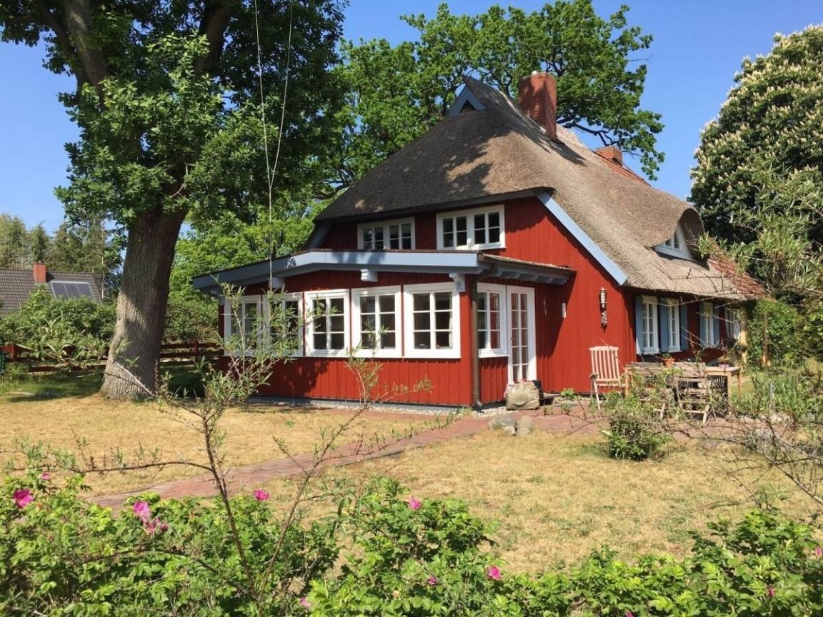 Wohlfühlen in "Ellas Kate", träumen in der hellen schönen Darßveranda, im Schwalbennest unterm Dach oder auf der Terrasse mit Garten unter der großen Eiche. Das schöne Haus in alter Holzbauweise, Baujahr ca. 1890, wurde 1998 auf traditionelle Weise saniert und bietet allen Komfort für Liebhaber der skandinavischen Lebensart.