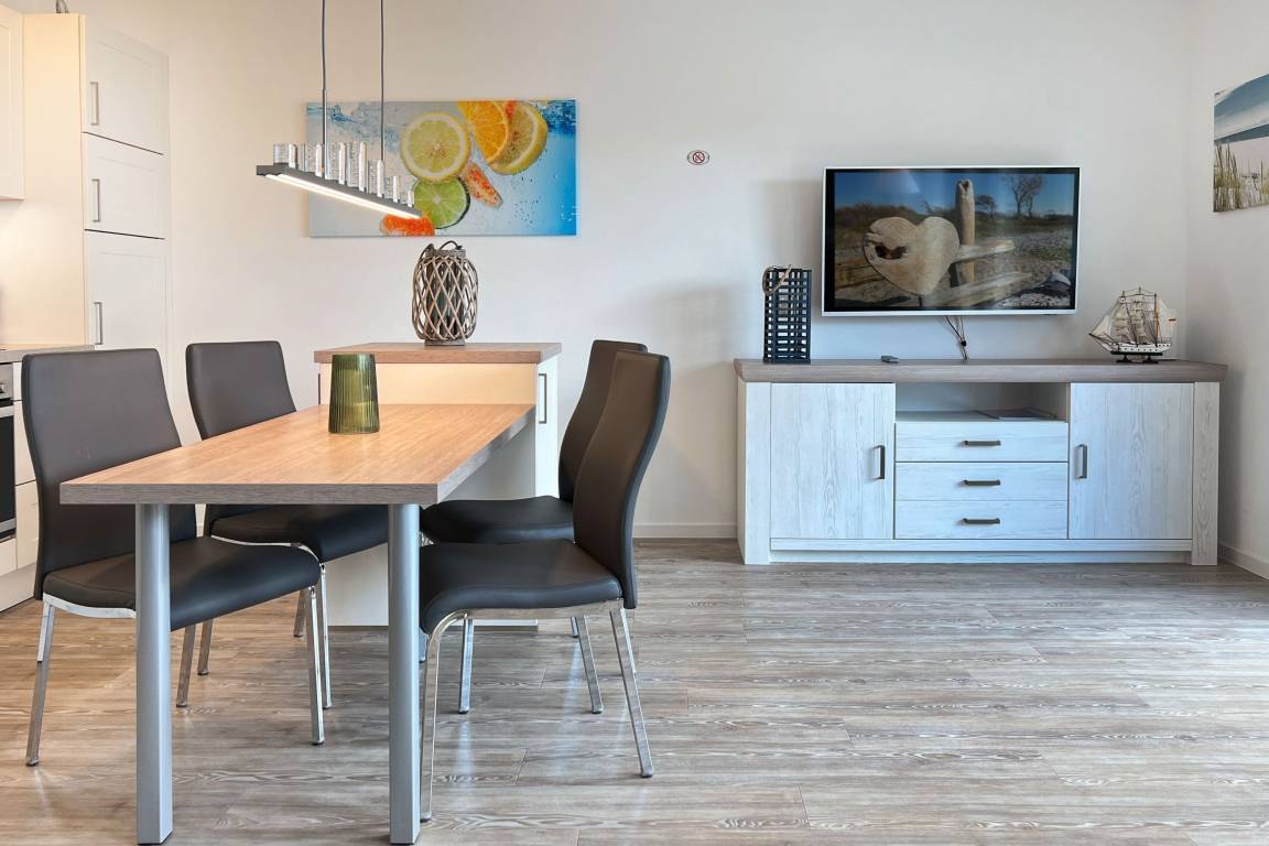 Willkommen in der Ferienwohnung "Tordalk, Whg. 01" in Prerow! Diese charmante Erdgeschosswohnung bietet auf 65 m² Platz für bis zu 3 Personen und verbindet modernen Komfort mit maritimem Flair.