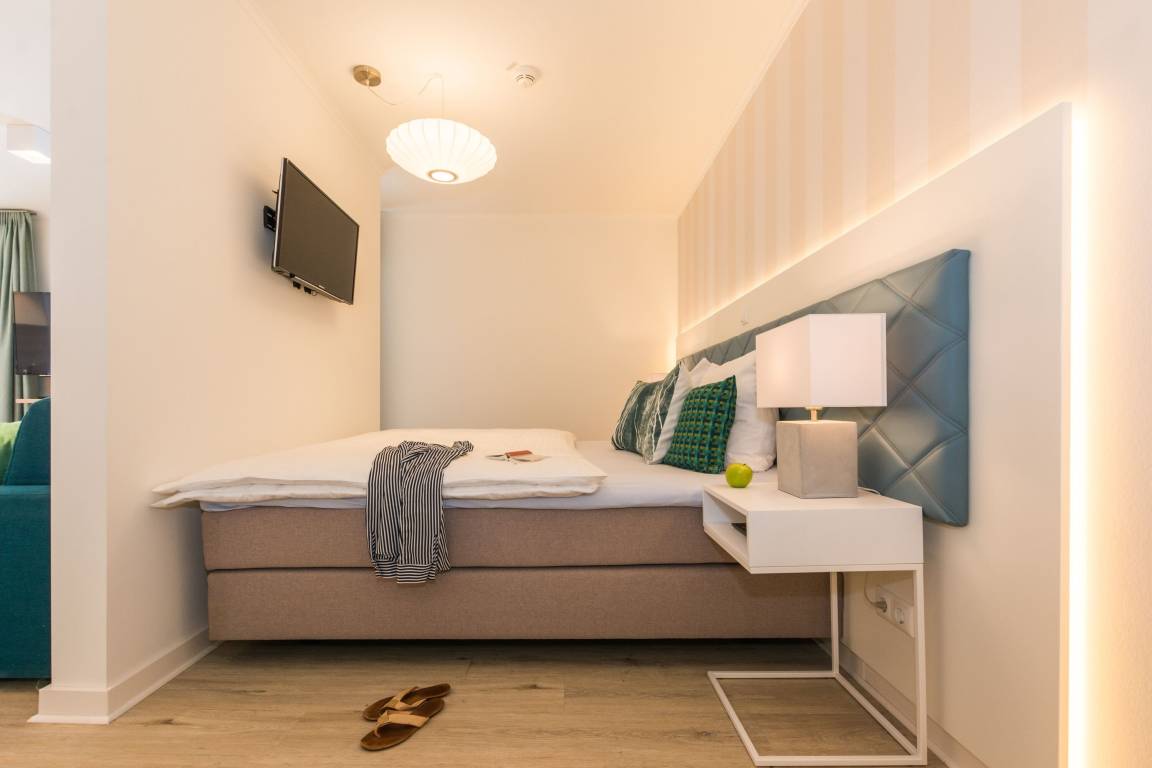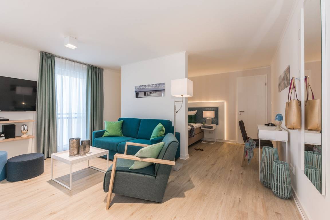 Dieses stilvoll eingerichtete Studio-Appartement vereint Großzügigkeit, Komfort und modernes Design – perfekt für einen entspannten Ostseeurlaub zu zweit.