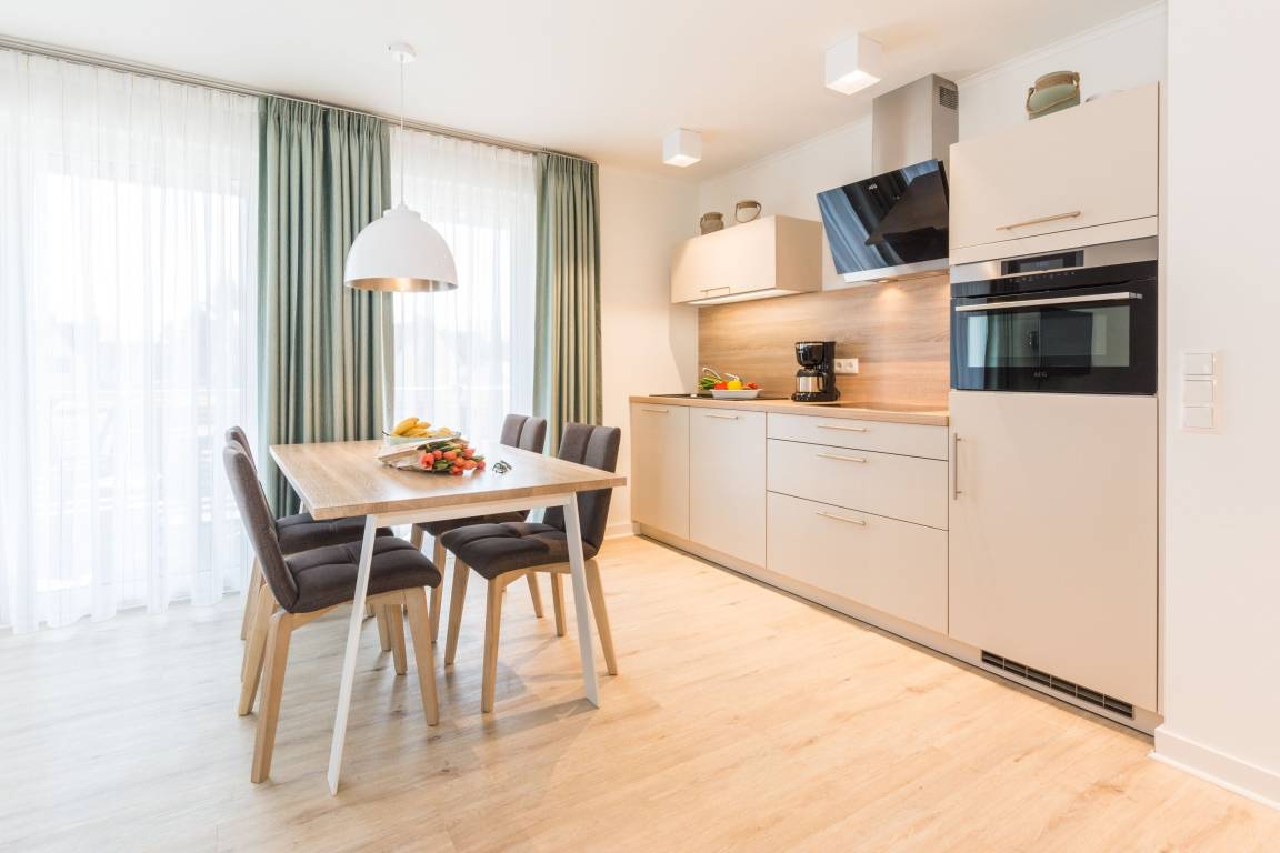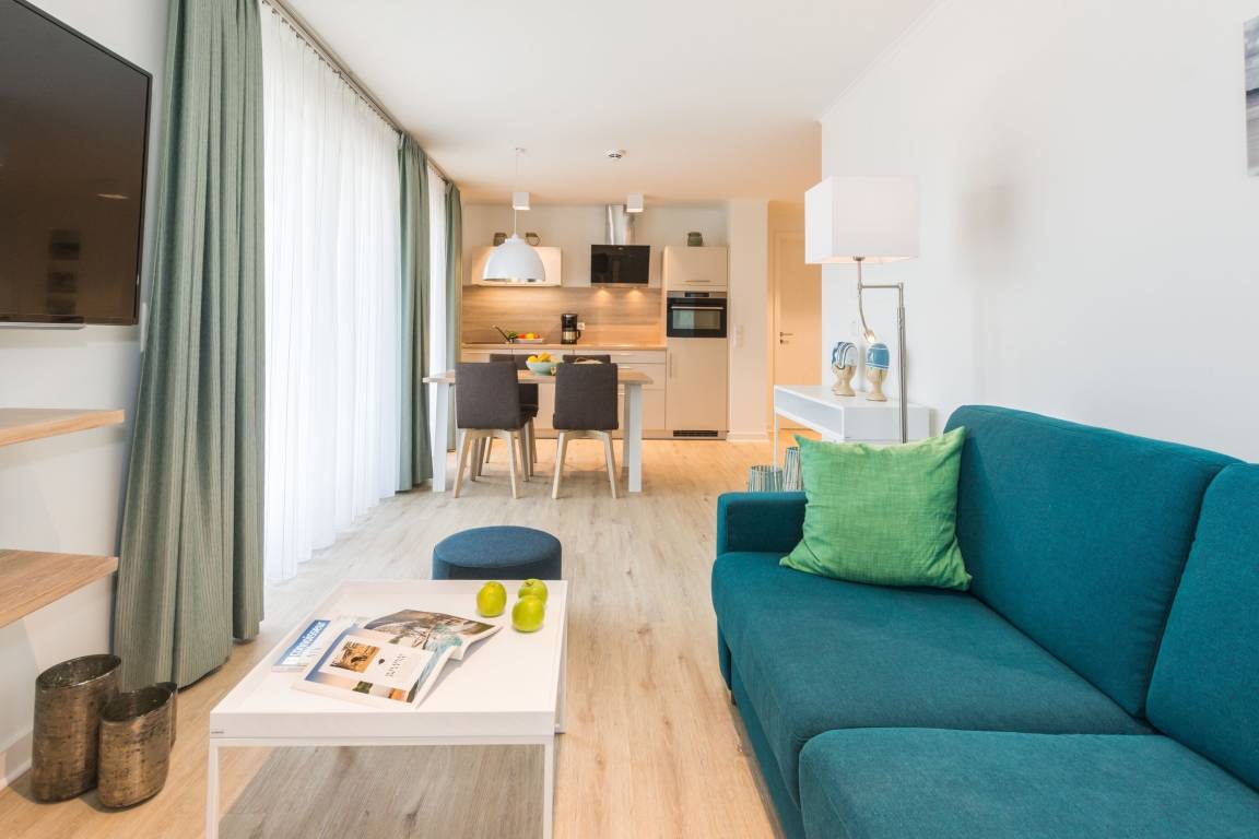 Verbringen Sie erholsame Urlaubstage in dieser modernen 3-Zimmer-Wohnung im Erdgeschoss, die sich ideal für Familien, Paare oder Freunde eignet. Auf ca. 66 m² Wohnfläche finden bis zu vier Personen ausreichend Platz zum Entspannen. Die hochwertige, maritime Gestaltung verleiht dem Appartement eine helle und angenehme Atmosphäre.