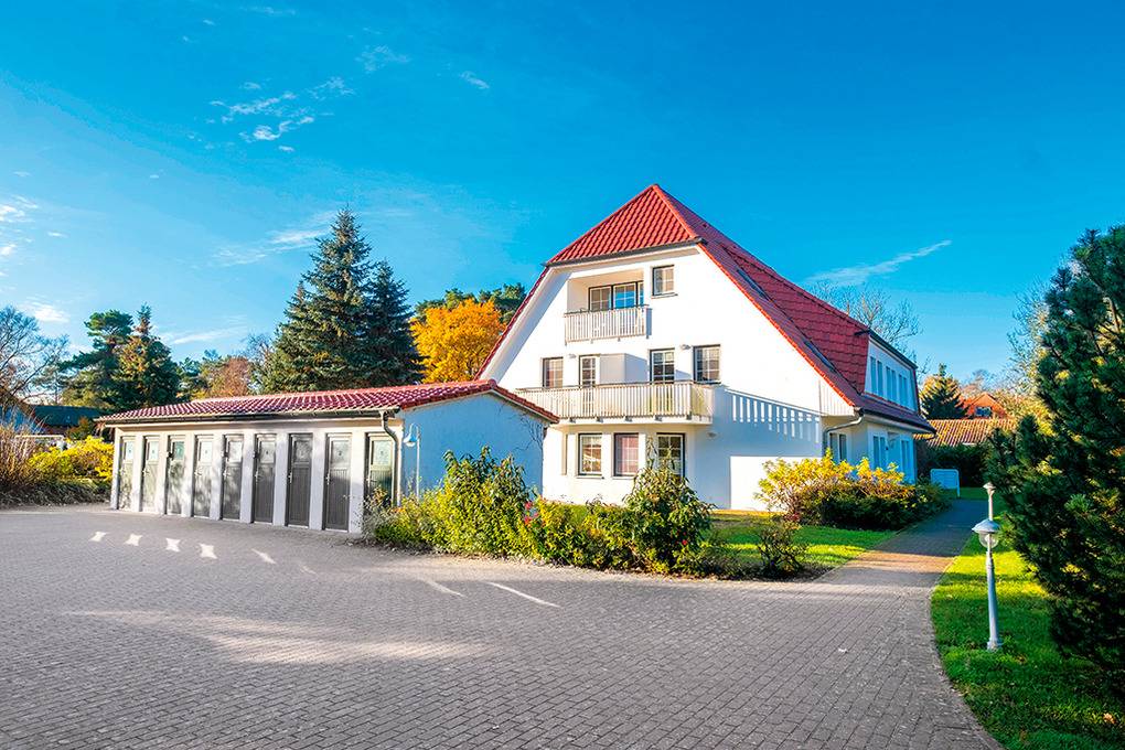 Ort: Prerow. Ruhige Lage in einer Wohnsiedlung. Ostseestrand 900 m. Ortsmitte 1100 m.