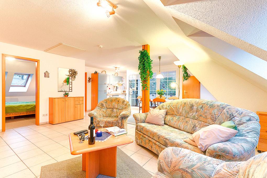 Nebenkosten 35 €/Pers. (werden bei Buchung erhoben). Strom, Wasser 1,50 €/Pers./Tag (werden bei Buchung erhoben). Kurtaxe. Bettwäsche, Handtücher stellt der Vermieter 25 €/Pers (wird bei Buchung erhoben). Zusätzliche Leistungen 1 Pkw-Stellplatz im Preis inklusive. Kinder Babybett/Hochstuhl zusätzlich zur maximalen Personenzahl, jeweils ohne Berechnung. Haustier 25 €/Aufenthalt, max. 2 Hunde (Anmeldung, wird bei Buchung erhoben).Räume & Aufteilung