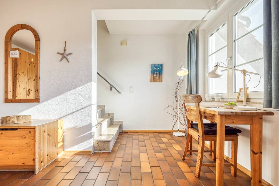nordisch eingerichtete Nichtraucher-Ferienwohnung für 2-6Personen in idyllischer Lage am Darßwald. 2 Bäder, 2 Schlafzimmer, Schlafsofa im Wohnzimmer,, Küche, Balkon, Parkplatz, separater Abstellraum für Fahrräder, separater Grillplatz, Kinderspielplatz.