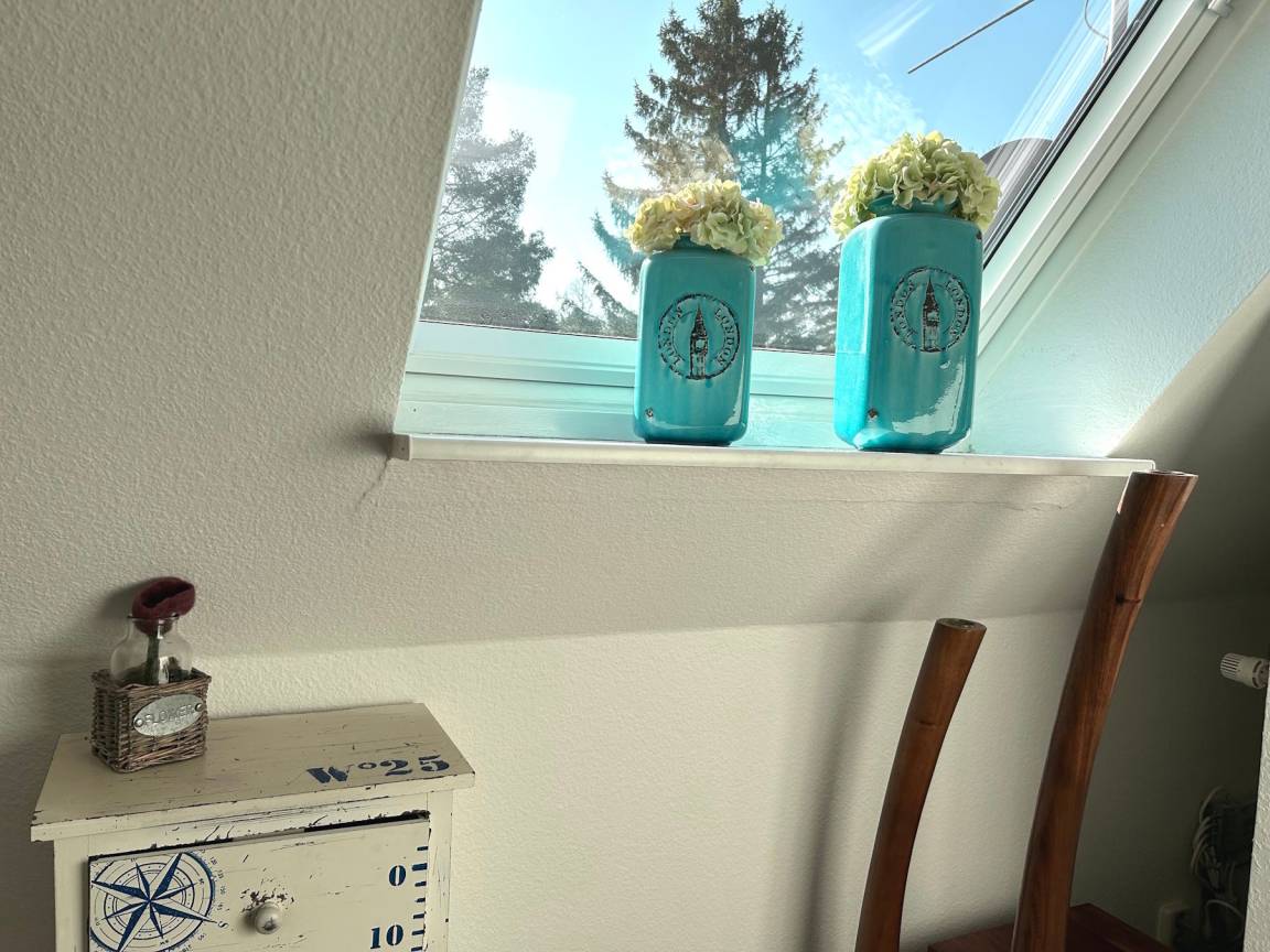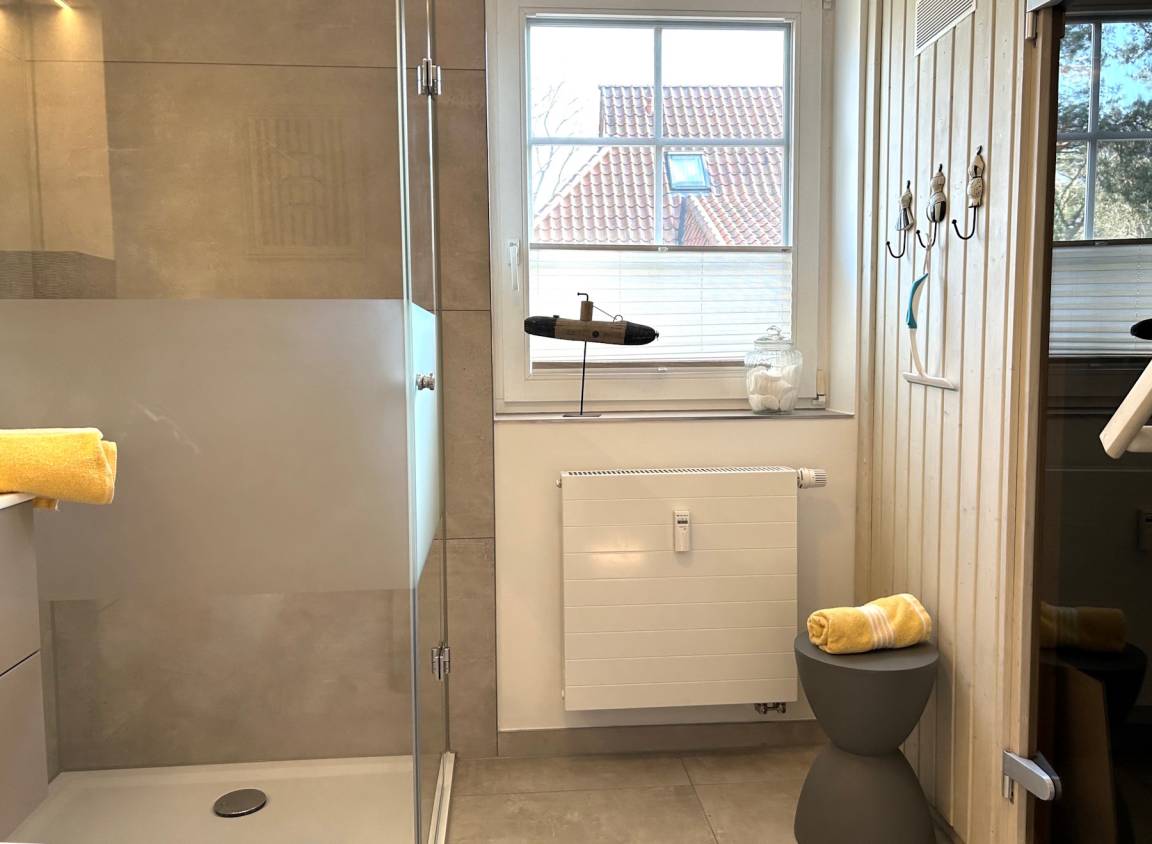 Zum Nordstrand laufen Sie ca. 7 Minuten und in 2 Minuten sind Sie im Darßwald. Das Haus ist modern eingerichtet, hat eine moderne Küche, 3 Schlafzimmer und 2 Bäder (eines mit Sauna), im Wohnzimmer einen Kamin, eine Süd-Terrasse, die in den gemeinschaftlichen Garten mündet. Dort befinden sich ein paar Spielgeräte und ein Grillplatz. Ein Parkplatz ist ebenfalls am Haus.