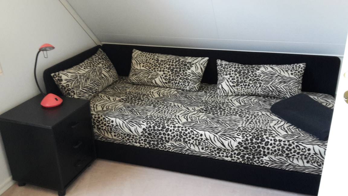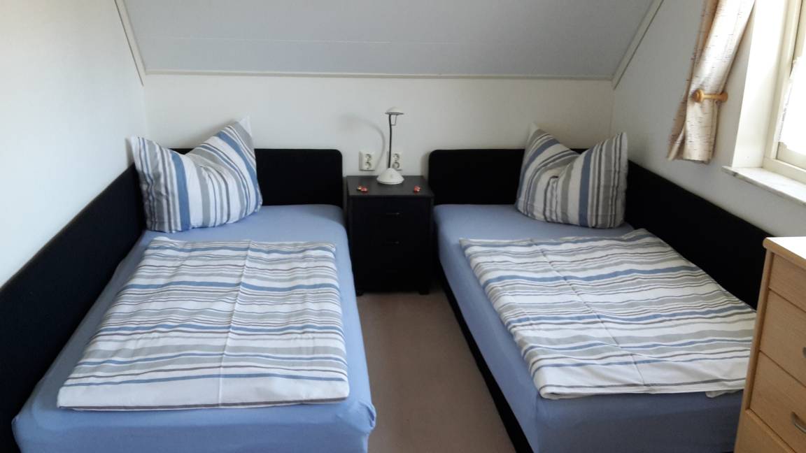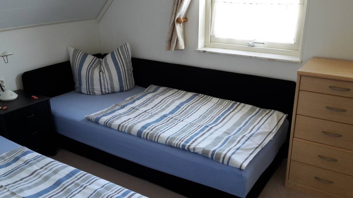 Im Schlafzimmer stehen 2 Einzelbetten, die bei Bedarf auch zusammen geschoben werden können und eine zusätzliche Liege, das Duschbad mit Fenster ist geräumig.