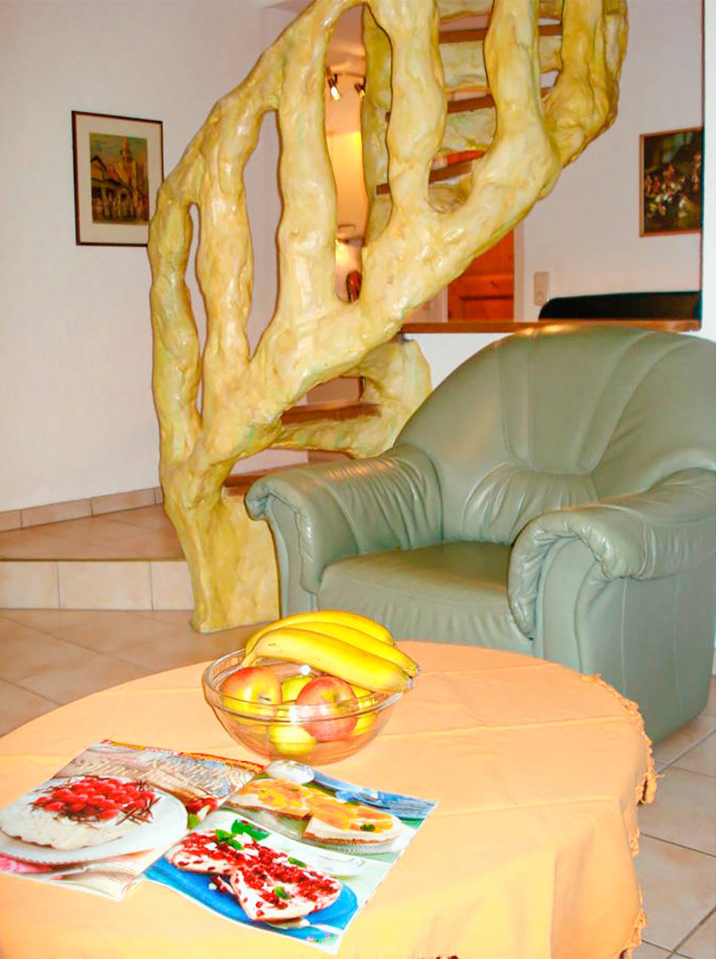 Moderne, geschmackvolle Einrichtung, alle Fewos mit Sat-TV, Radio/CD-Player, Terrasse oder Balkon (Sitzmöbel). Kostenloser Internetzugang über W-Lan. Zentralheizung. 1 Pkw-Stellplatz pro Fewo.