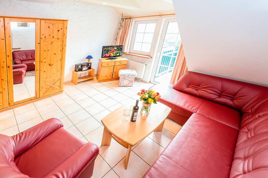 Moderne, geschmackvolle Einrichtung, alle Fewos mit Sat-TV, Radio/CD-Player, Terrasse oder Balkon (Sitzmöbel). Kostenloser Internetzugang über W-Lan. Zentralheizung. 1 Pkw-Stellplatz pro Fewo.