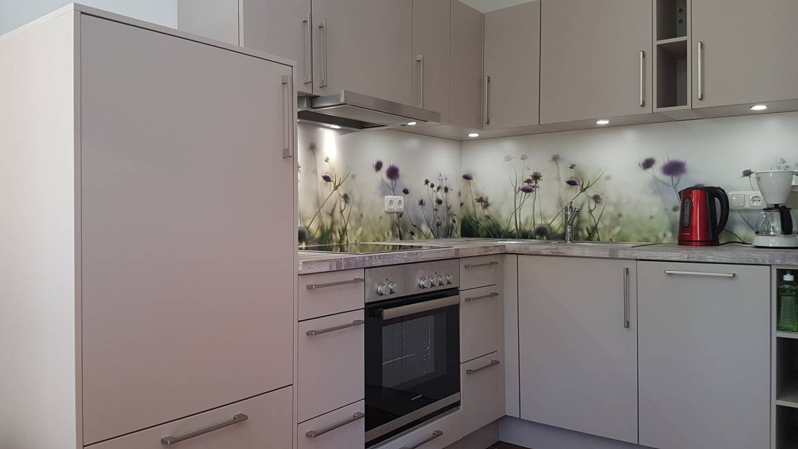 Die Wiese vor der Wohnung ist ruhig und sonnig. Ein Hund ist nach Voranmeldung willkommen.
