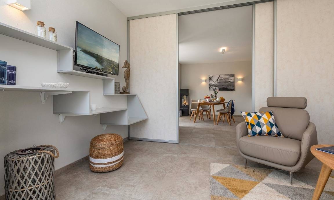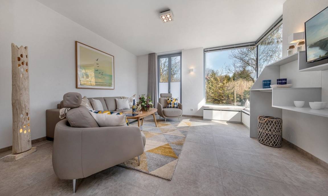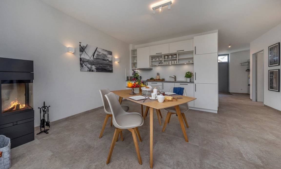 Die Ferienwohnung "Sundevit" bietet auf 105 m² Platz für bis zu 4 Personen und überzeugt durch eine hochwertige Ausstattung. Ein geräumiges Schlafzimmer mit einem Boxspringbett (180 x 200 cm) und Fernseher sorgt für angenehme Nächte. Im lichtdurchfluteten Wohnzimmer mit Kamin, offener Wohnküche und Schlafcouch (160 x 200 cm) können entspannte Stunden verbracht werden. Der Essbereich lädt zu gemeinsamen Mahlzeiten ein.