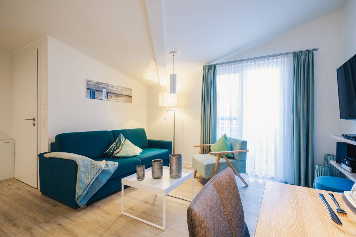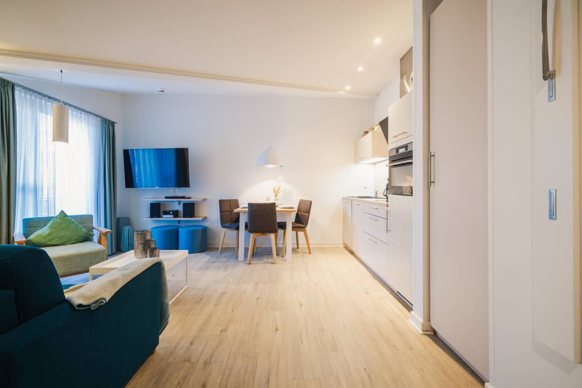 Einheitlich hochwertiger, maritimer Einrichtungsstil in allen Appartements