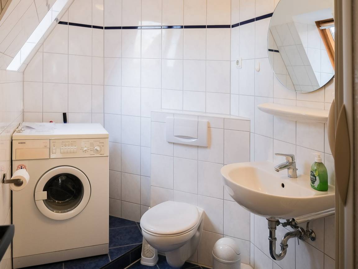 Die Küche mit Kühlschrank mit Frostfach und Geschirrspüler, das Bad mit Waschmaschine und das Wohnzimmer mit SAT-TV sorgen für zusätzlichen Komfort.