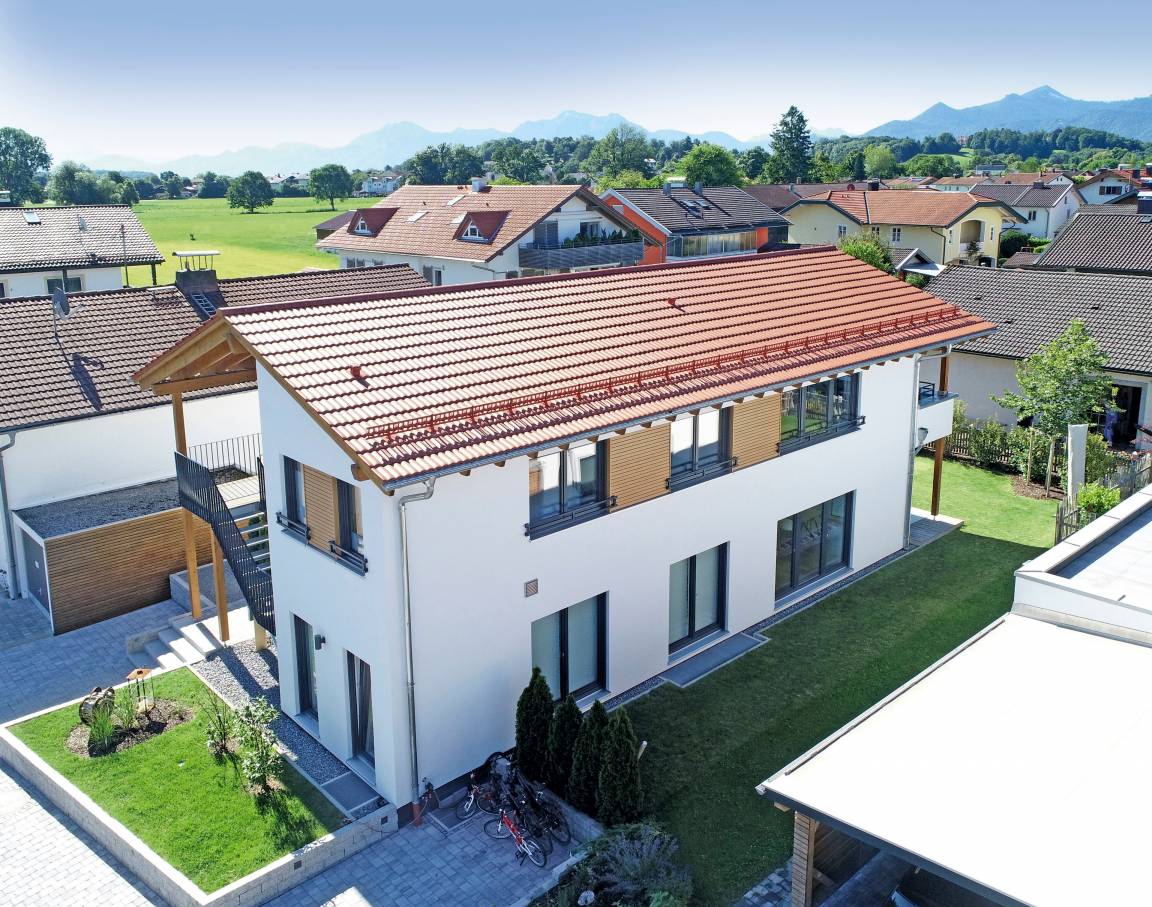 - Kontrollierte Wohnraumlüftung mit Kühlung im Sommer inkl. Fußbodenheizung in Niedrigenergiebauweise