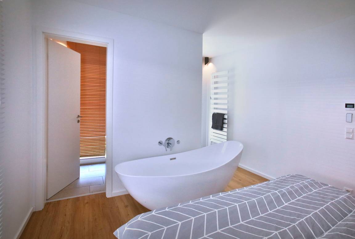 - Zwei Bäder; Ein Schlafzimmer mit freistehender Badewanne; Waschmaschine, Bügeleisen/-brett