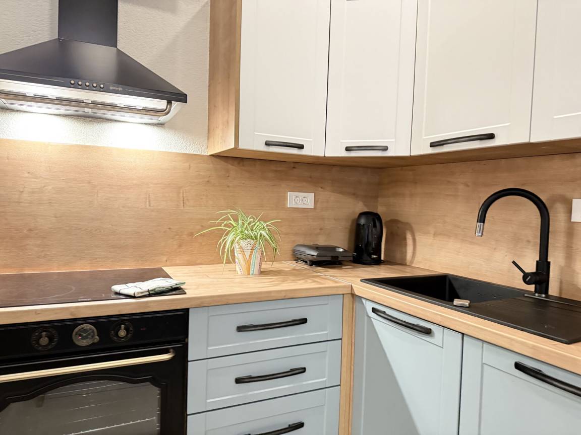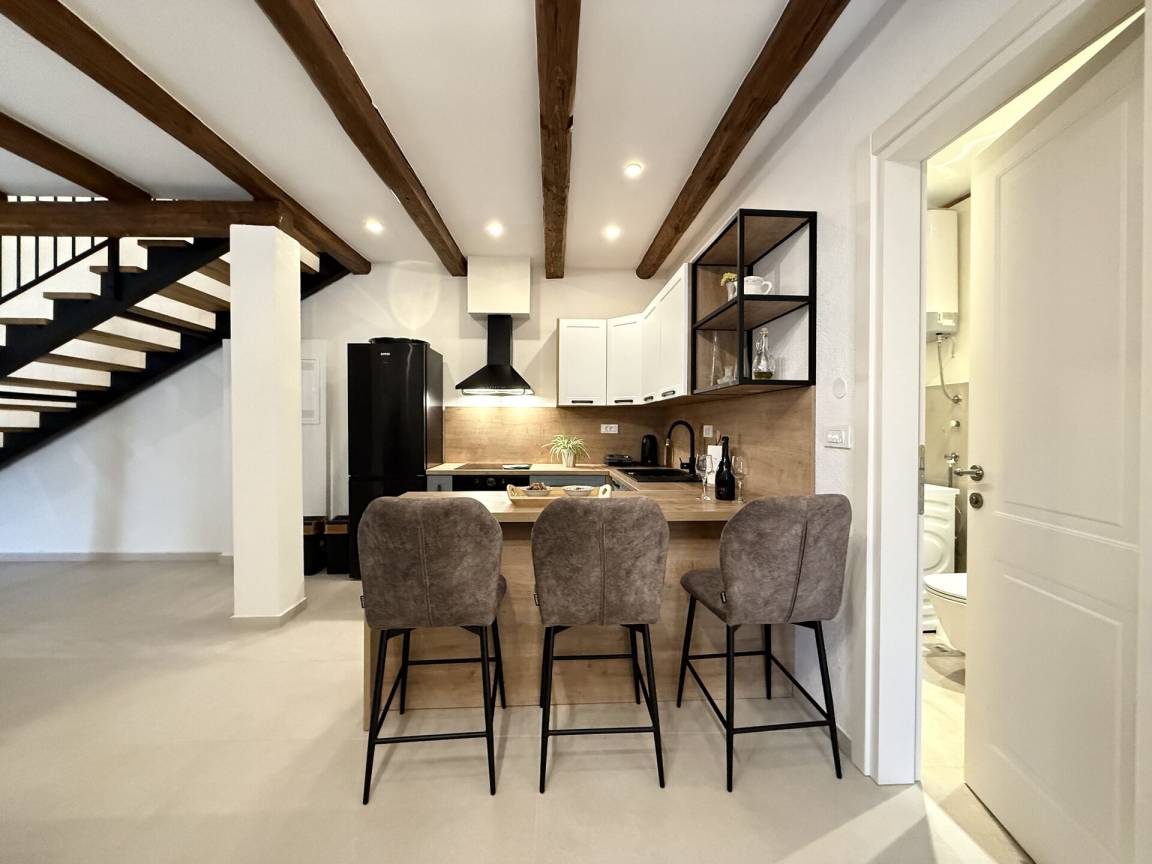 Wohnküche: gut ausgestattete Küche, Esstisch, Spülmaschine, Kühlschrank, Tiefkühler, Herd, Ofen, Italienische Kaffeemaschine, Sofa, WiFi Internet, Klimaanlage, TV.