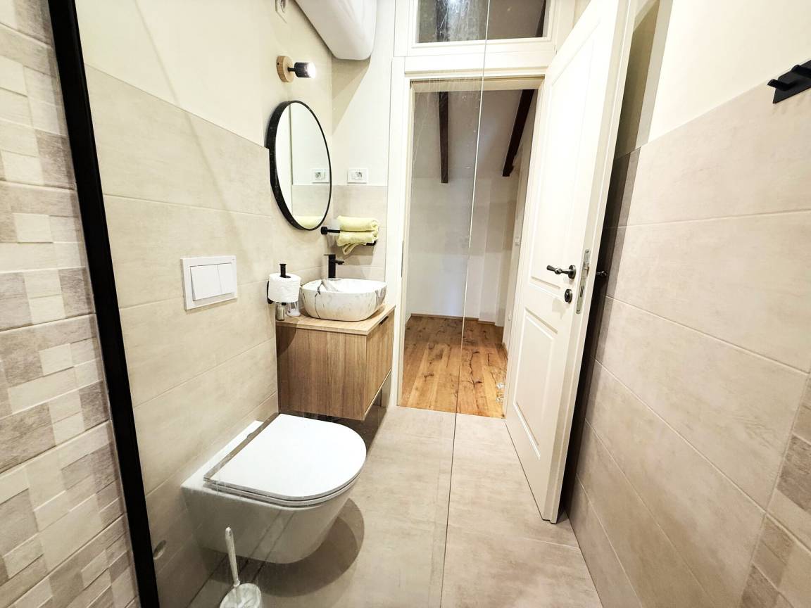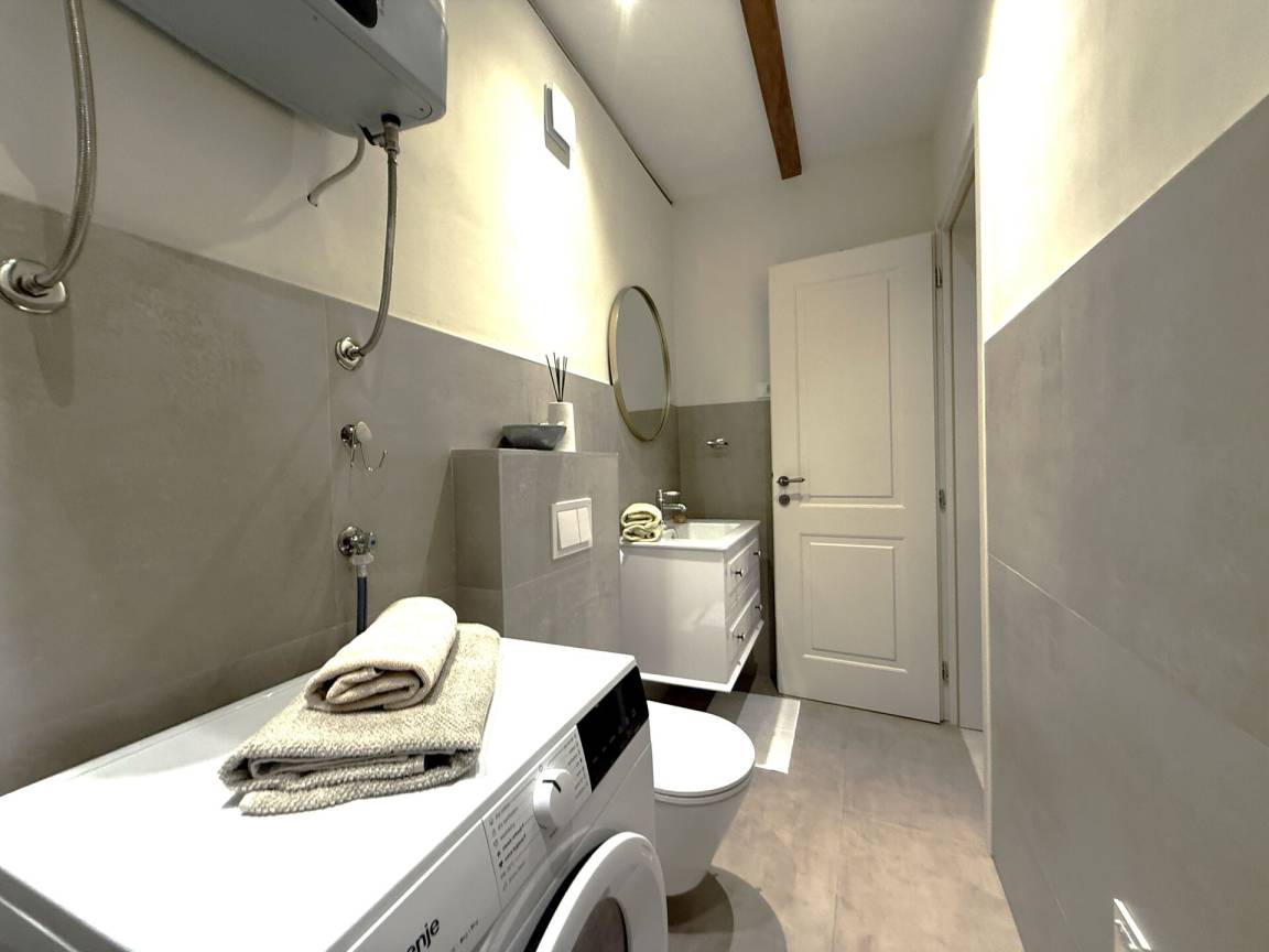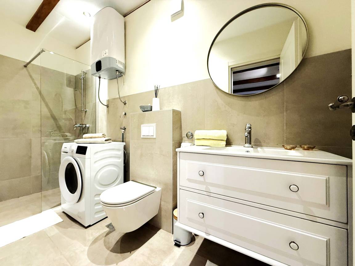 Badezimmer: Waschbecken, WC, Dusche, Waschmaschine, WiFi Internet.