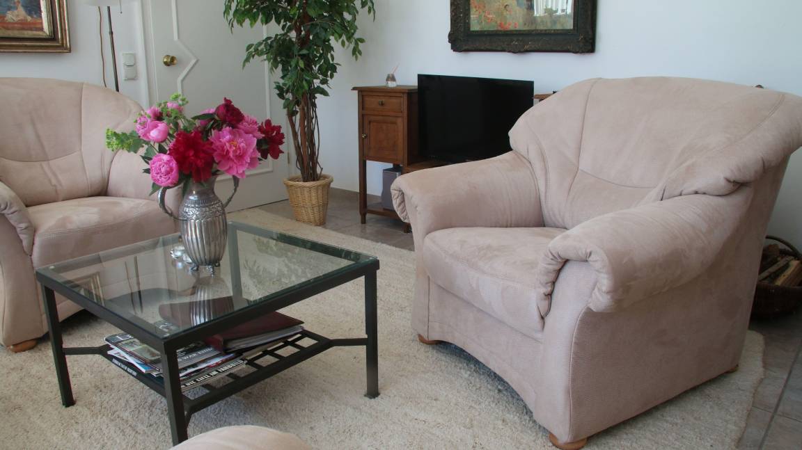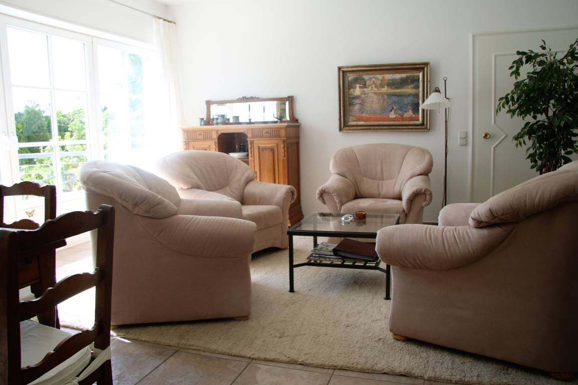 Wohnzimmer mit gemütlicher Sitzgruppe, TV, Radio, Telefon, DVD, DSL, Kaminofen und Esszimmertisch mit 6 Stühlen,