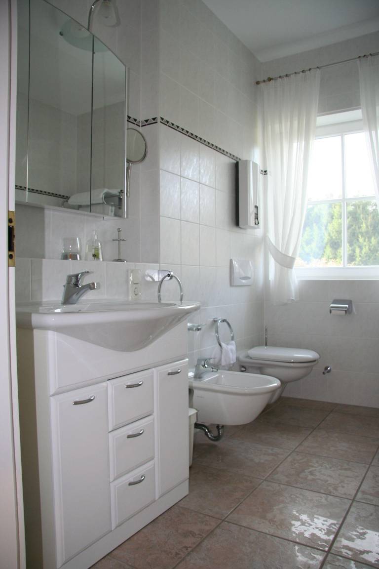 Bad: Badezimmerschrank mit Vergrößerungsspiegel, Fön, Badewanne, Dusche , WC, Bidet, Handtuchwärmer, Handtücher inklusive, Balkon mit Tisch und Stühlen und Polstern