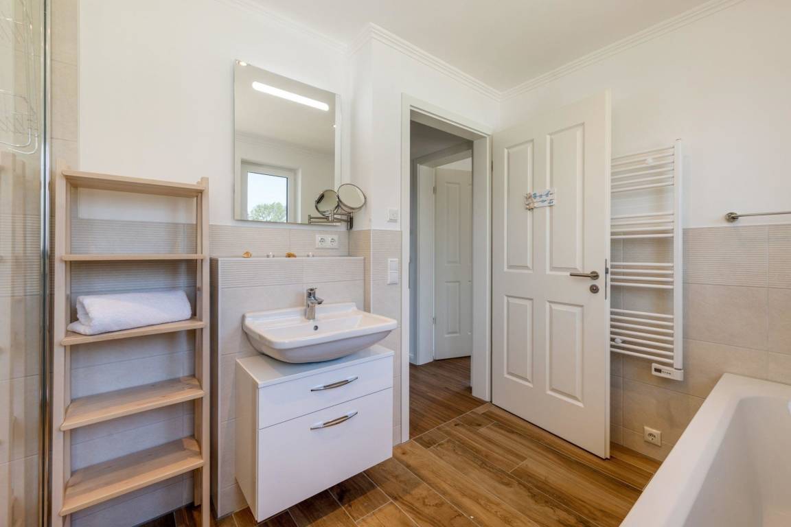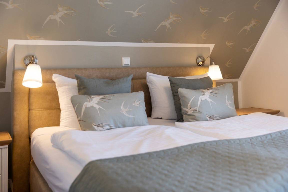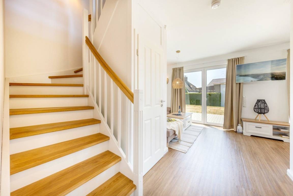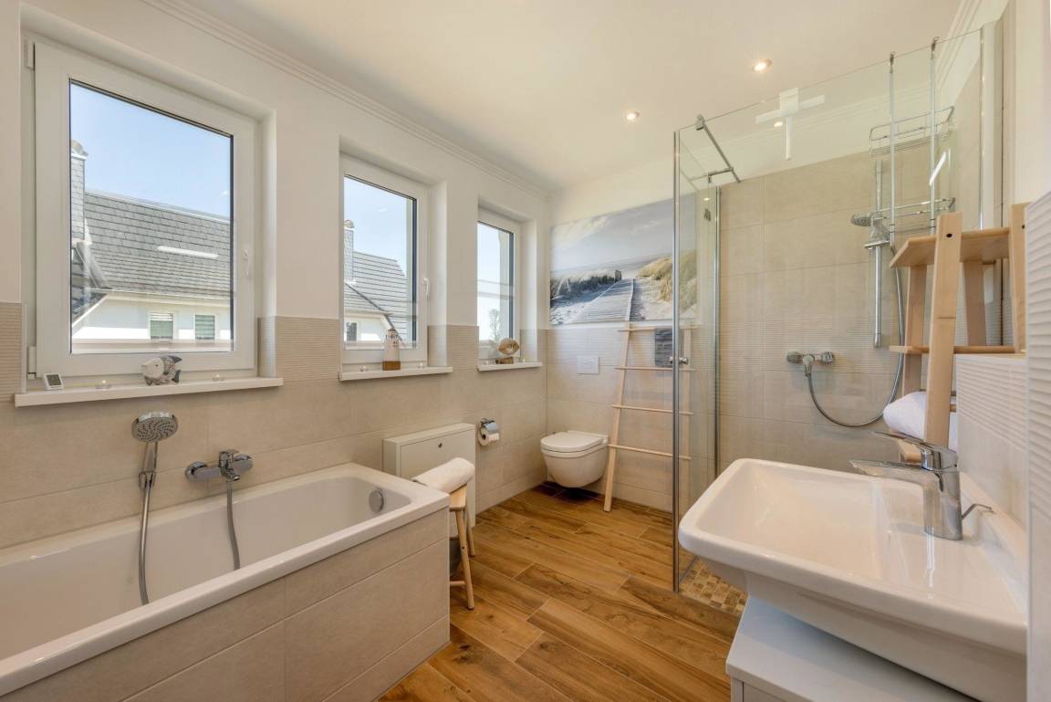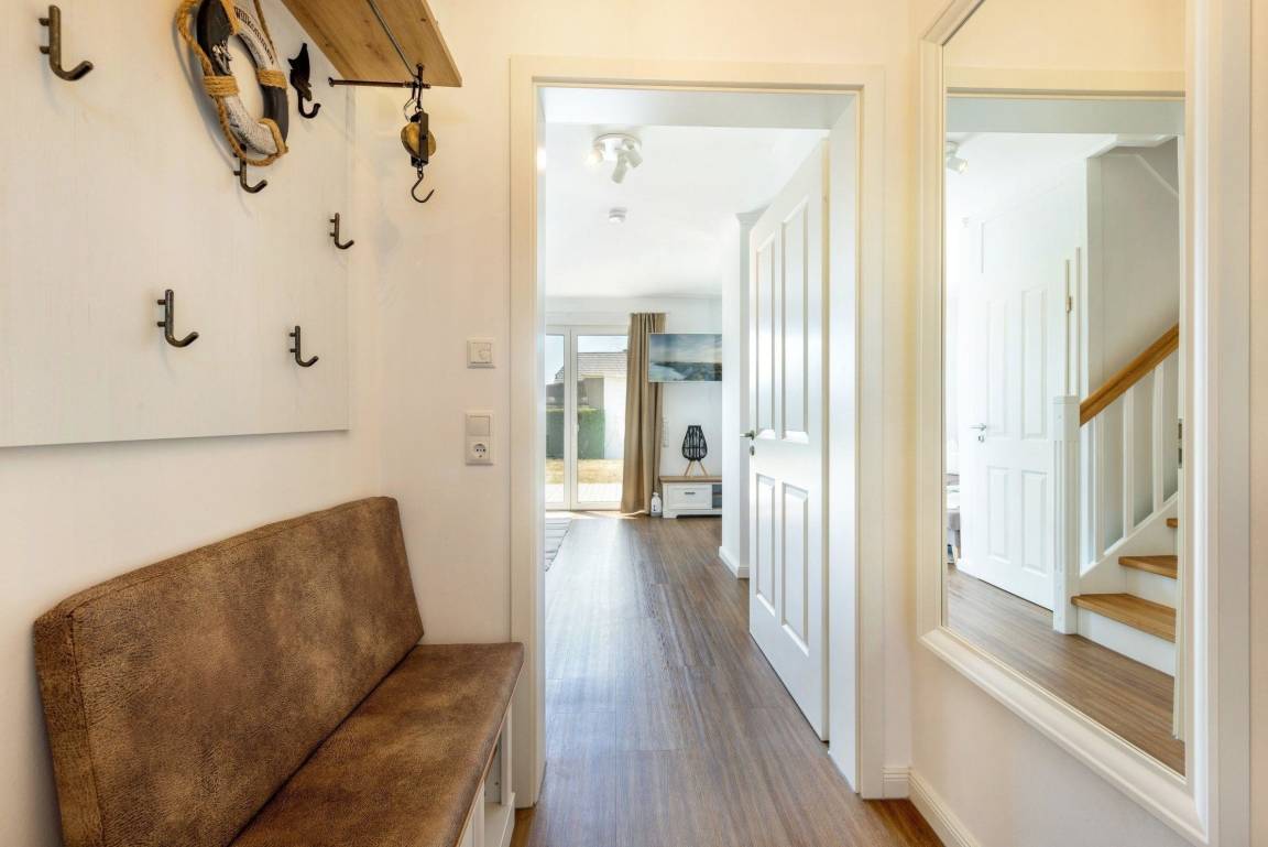 Das Haus Traum-Anker ist ein moderner Neubau, der 2023 fertiggestellt wurde. Es bietet Platz für bis zu 6 Personen und verfügt über drei Schlafzimmer: Zwei Schlafzimmer mit Doppelbetten und TV befinden sich in der ersten Etage, während im Dachgeschoss ein Schlafzimmer mit zwei Einzelbetten angesiedelt ist. Hier gibt es ausreichend Platz für entspannende Spiele für die Kleinen. Zur Ausstattung gehören zwei Badezimmer – eines mit Dusche und Badewanne in der ersten Etage, das andere im Erdgeschoss mit Dusche. Der offene Wohn- und Essbereich mit Esstisch und einer gemütlichen Sitzgruppe im Landhausstil lädt zu gemeinsamen Stunden ein. Eine Sauna sorgt zusätzlich für Entspannung. Die Wohnfläche erstreckt sich über 115 m² und es stehen zwei Parkplätze direkt am Objekt zur Verfügung.