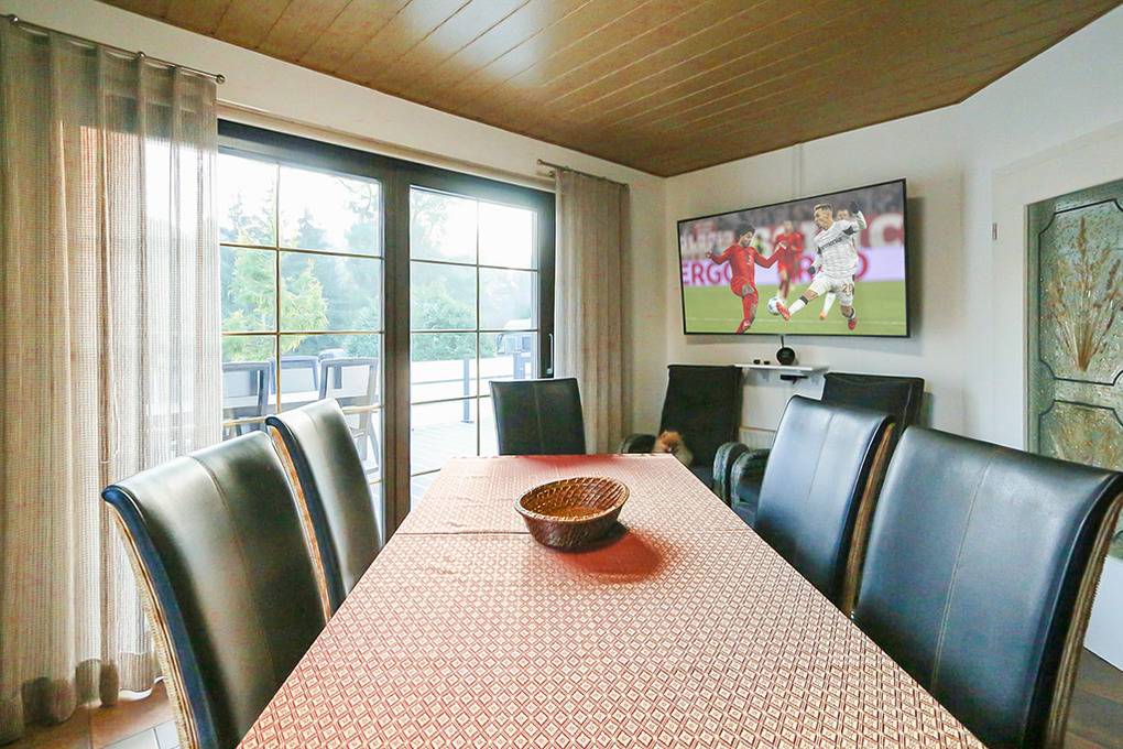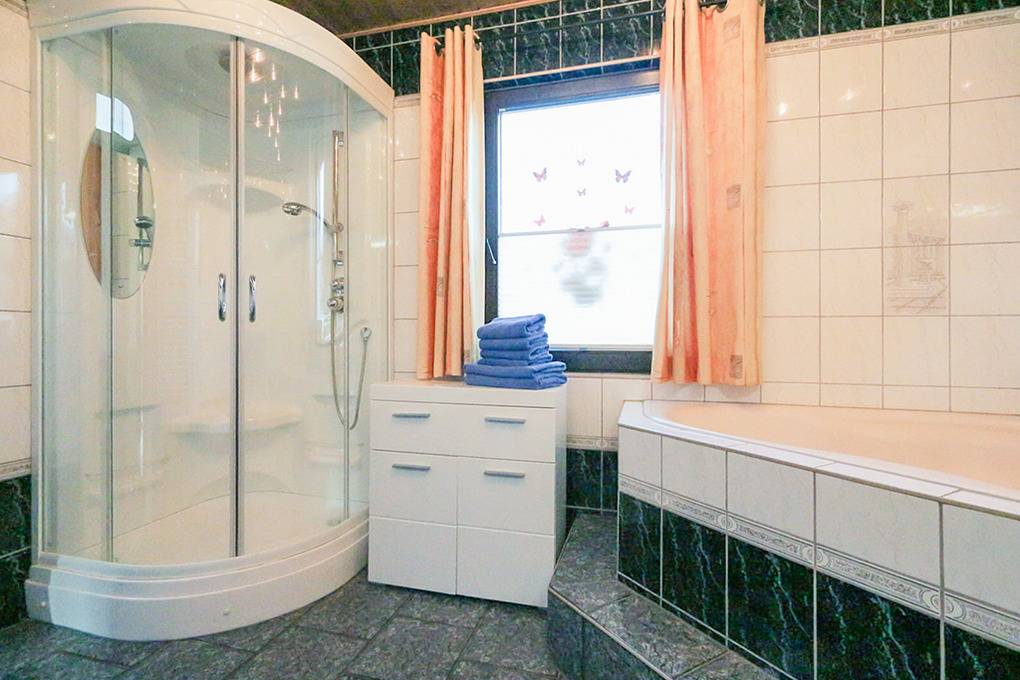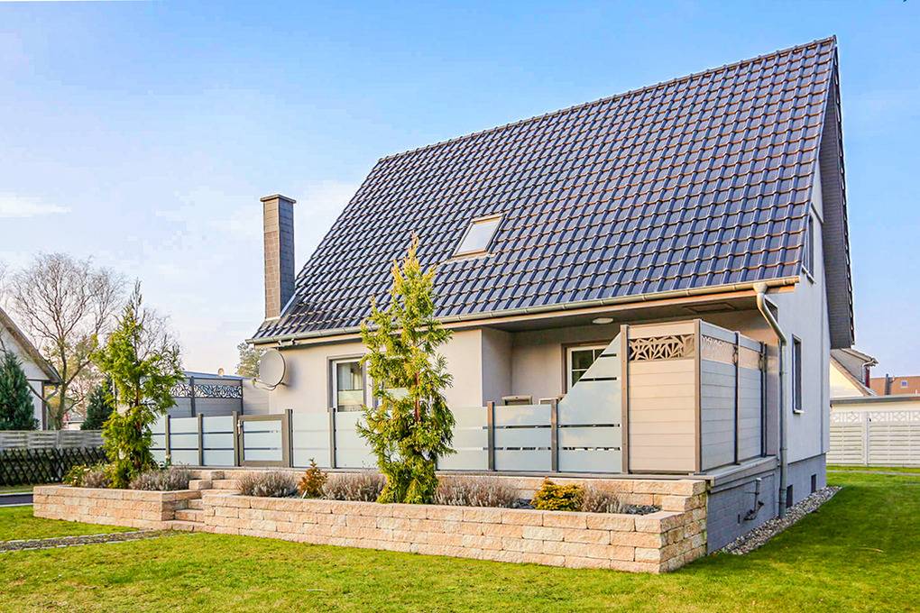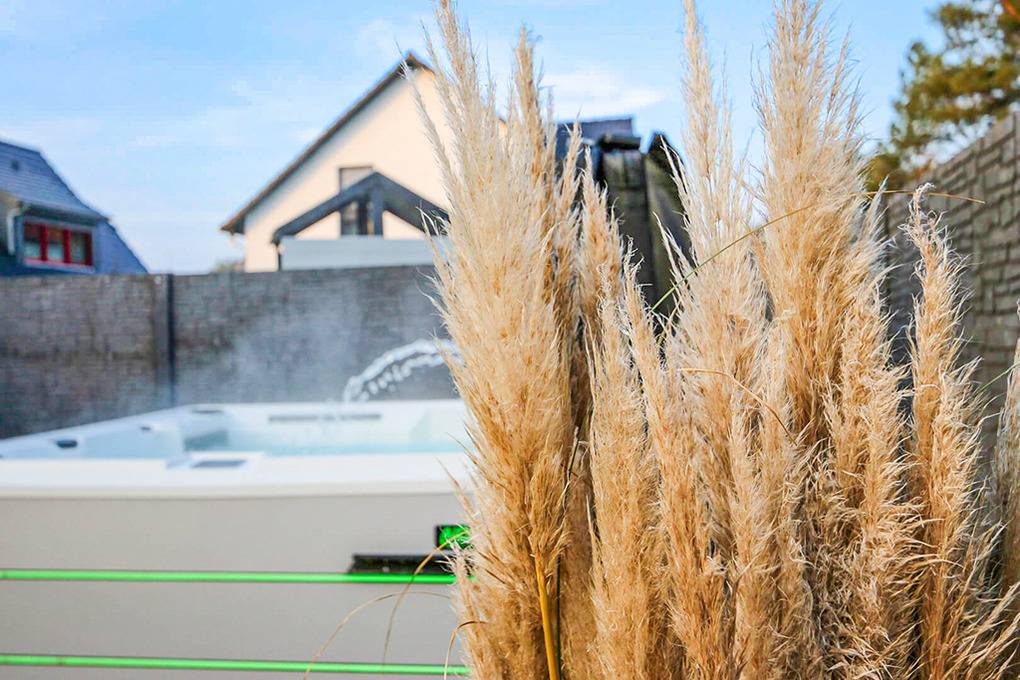 Haus: Komfortables Ferienhaus mit Whirlpool auf 1000 qm großem Gartengrundstück. Moderne, geschmackvolle Einrichtung. Das Haus besticht durch sein großes Platzangebot: 150 qm, 2 Schlafzimmer, 2 Bäder. Nichtraucherhaus. Kostenloser Internetzugang über W-Lan.. Fußbodenheizung. Große Terrasse mit Sitzmöbeln, Sonnenliegen, Gasgrill. Schönes weitläufiges eingezäuntes Gartengrundstück mit drehbarem Glaspavillon, Whirlpool (beheizbar bis 40 °Grad). Carport mit 2 Pkw-Stellplätzen, E-Bike Ladestation. 2 weitere PKW-Stellplätze (nicht überdacht). Zur Sicherheit des Grundstücks sind die Zufahrtstore kameraüberwacht. Wohn- und Terrassenbereiche sind selbstverständlich nicht erfasst – die Privatsphäre bleibt vollständig gewahrt.