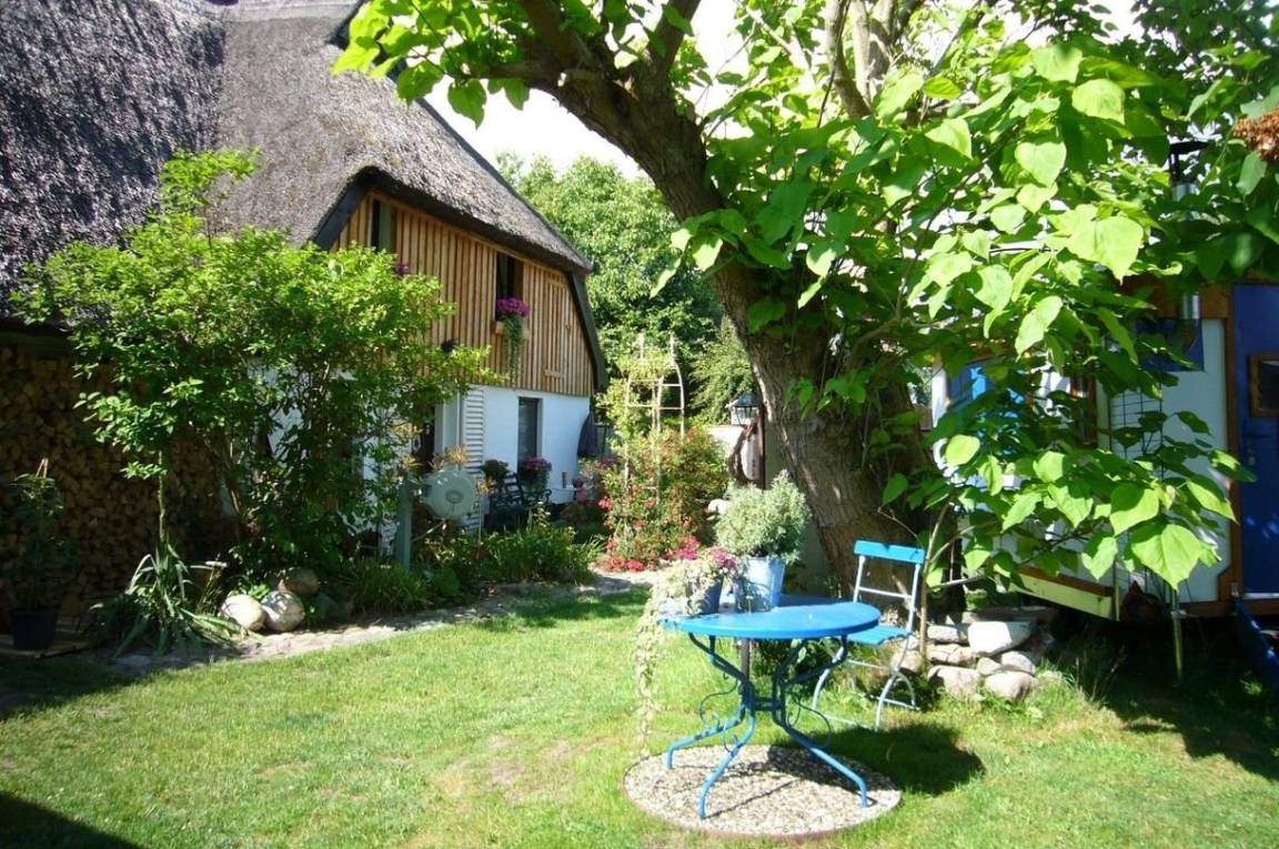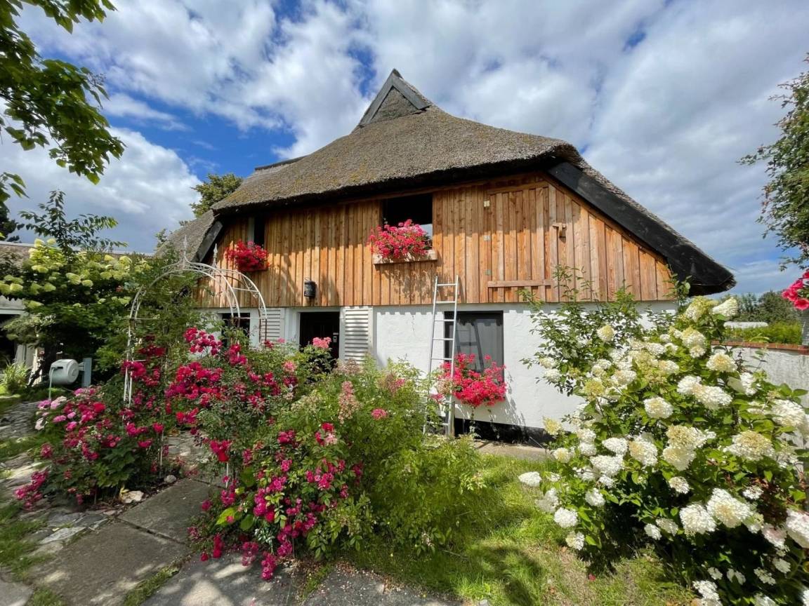 Entspannen Sie in dieser einzigartigen Unterkunft. Das romantische reetgedeckte Gebäude befindet sich in unmittelbarer Nähe zum Darß sowie zum Ostsee-Strand - und doch abseits des Trubels befindet sich unser Naturwerk in der grünen Gemeinde Pruchten zwischen Zingst und Barth. Die Ferienwohnung mit 70 Quadratmetern hat einen separaten Eingang und ist über eine Treppe zu erreichen. Sie bietet Platz für bis zu vier Personen, ist mit Badezimmer, separater Dusche, zwei Schlafzimmern, einem großen Raum mit Wohnküche, Essbereich und Loungebereich ausgestattet. Für kuschelige Stunden am Abend sorgt das Feuer im Holzofen. Nix von der Stange, alles individuell eingerichtet.